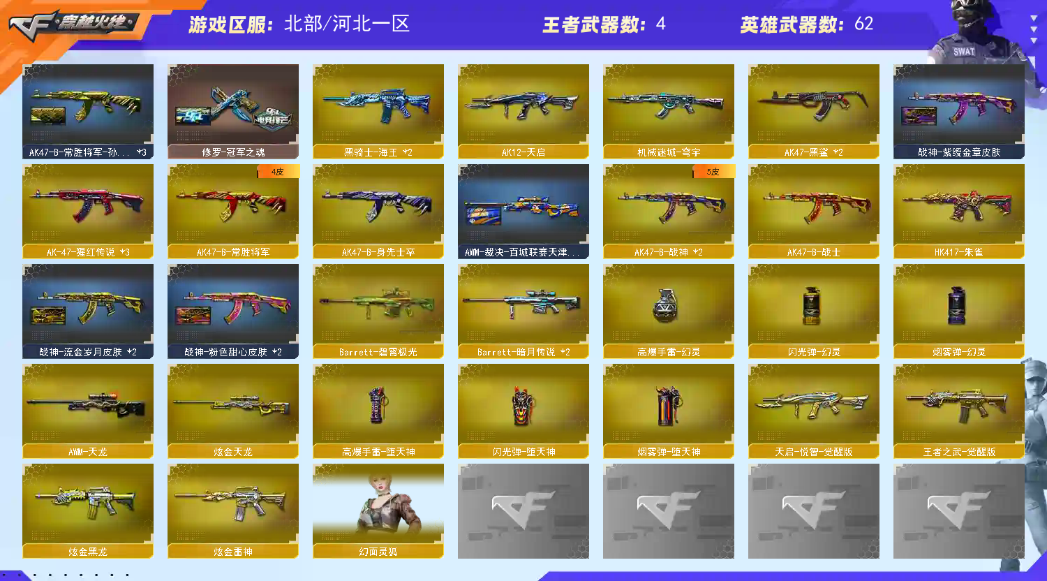 • 游戏区服:穿越火线 / 网通区 / 河北一区