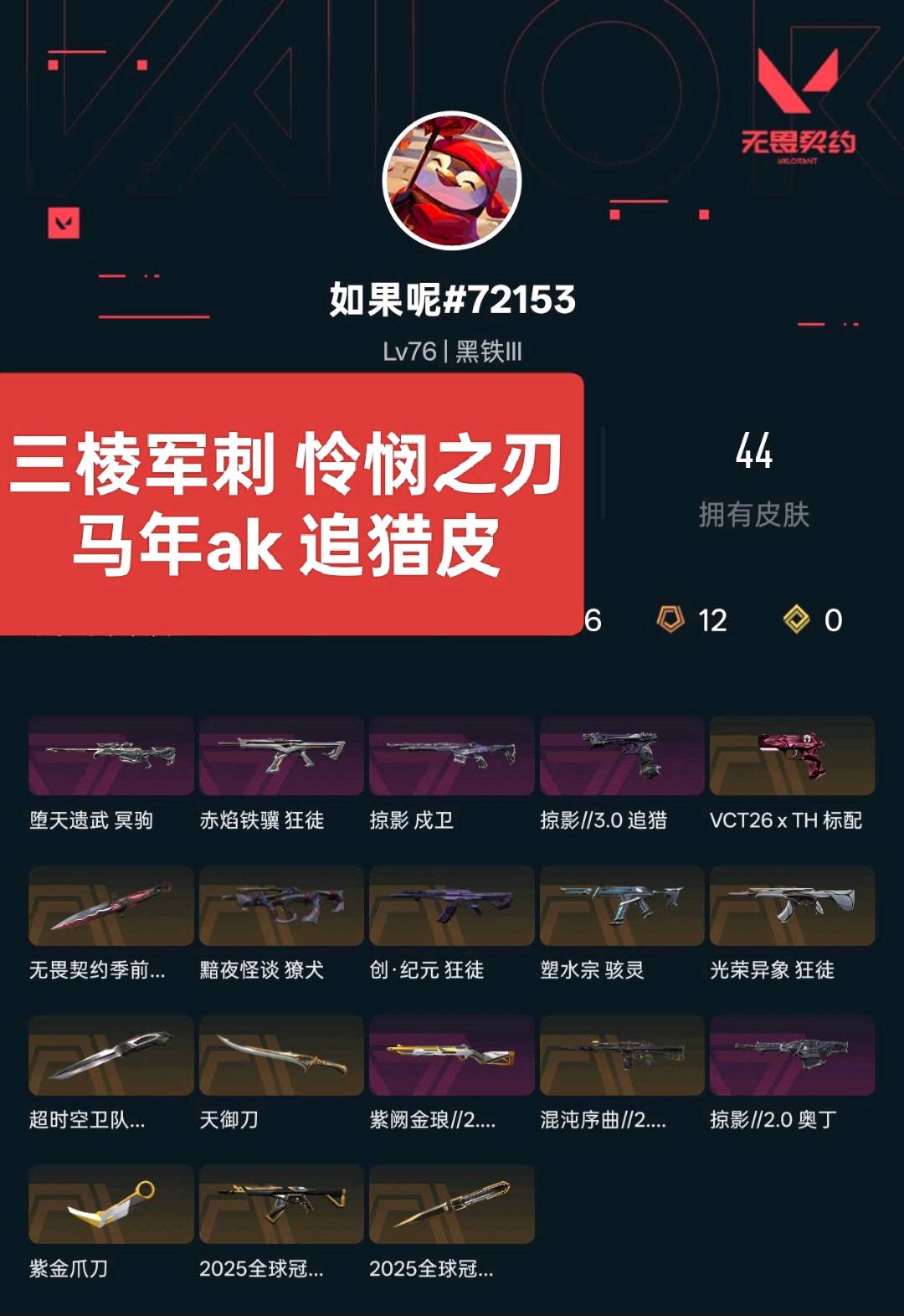 恶意炸鱼挤号⚡️三棱军刺+怜悯之刃⚡️25冠军套⚡️马年ak⚡️追猎皮⚡️光荣异象⚡️紫金爪天域刀