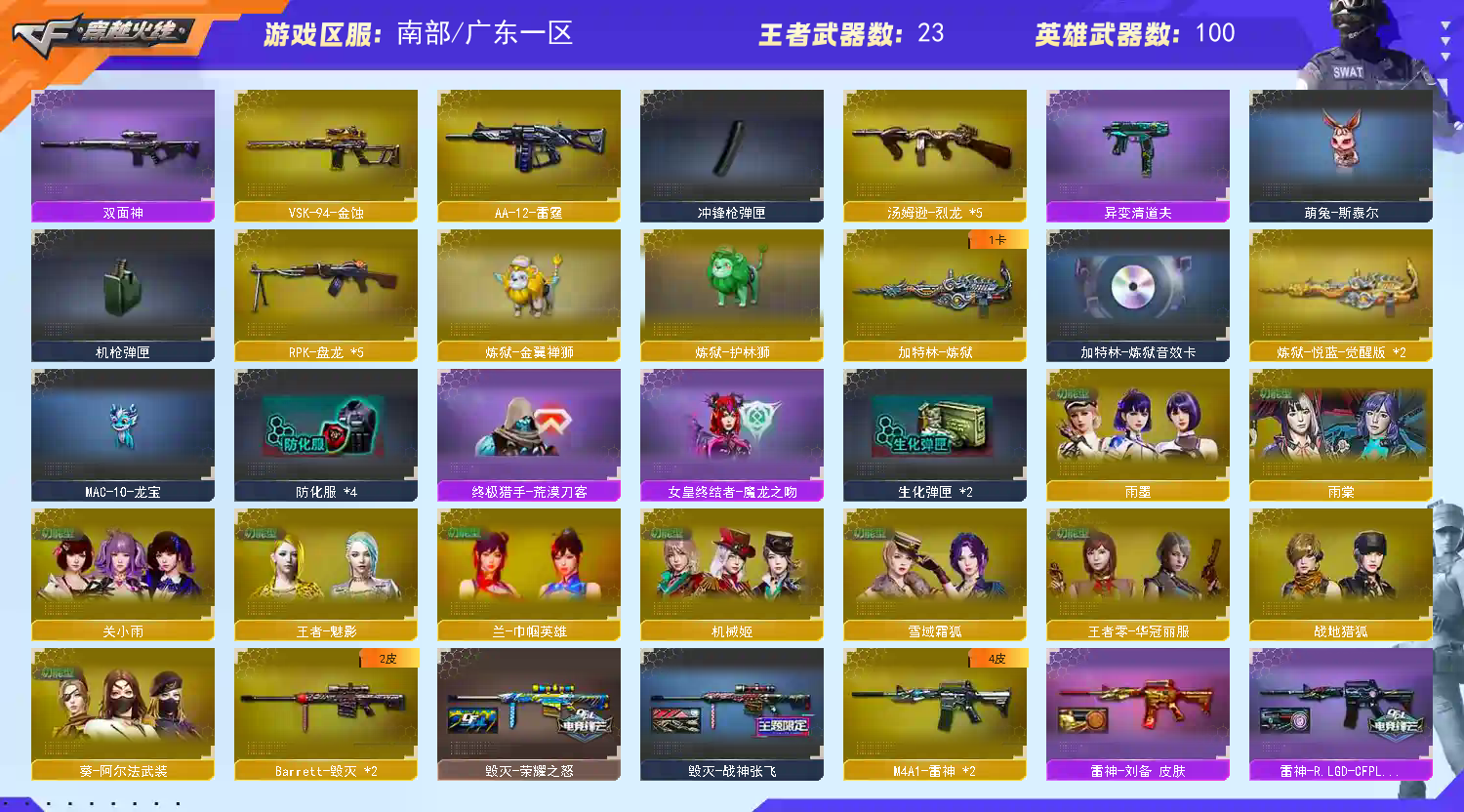 神威莲华 传说影煞 炽芒蝶刃x7 双玄武 金翼禅师 护林狮 清道夫 萌兔斯泰尔 六列六盘 爆破自行看;USP-雷暴王者,荣耀世冠-柯尔特,柯尔特-冠军之特,炽芒蝶刃,Knife-冠军之刃,传说影煞,隼,