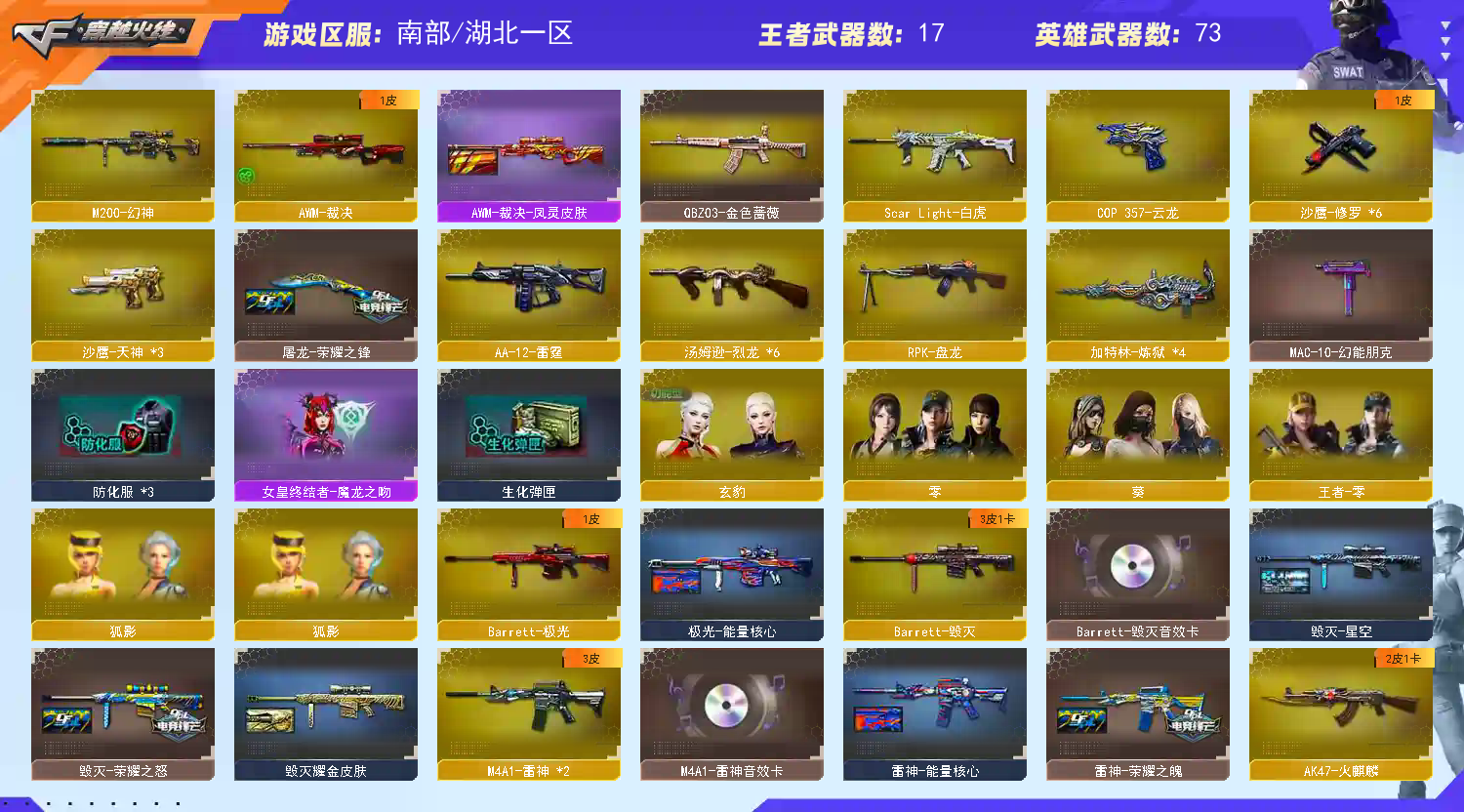 南部幻神白虎cop云龙6烈4炼狱火麒麟毁灭雷神音效卡雷神荣耀之魄毁灭2018;RPK-盘龙,QBZ03-金色蔷薇,M200-幻神,Scar Light-白虎,