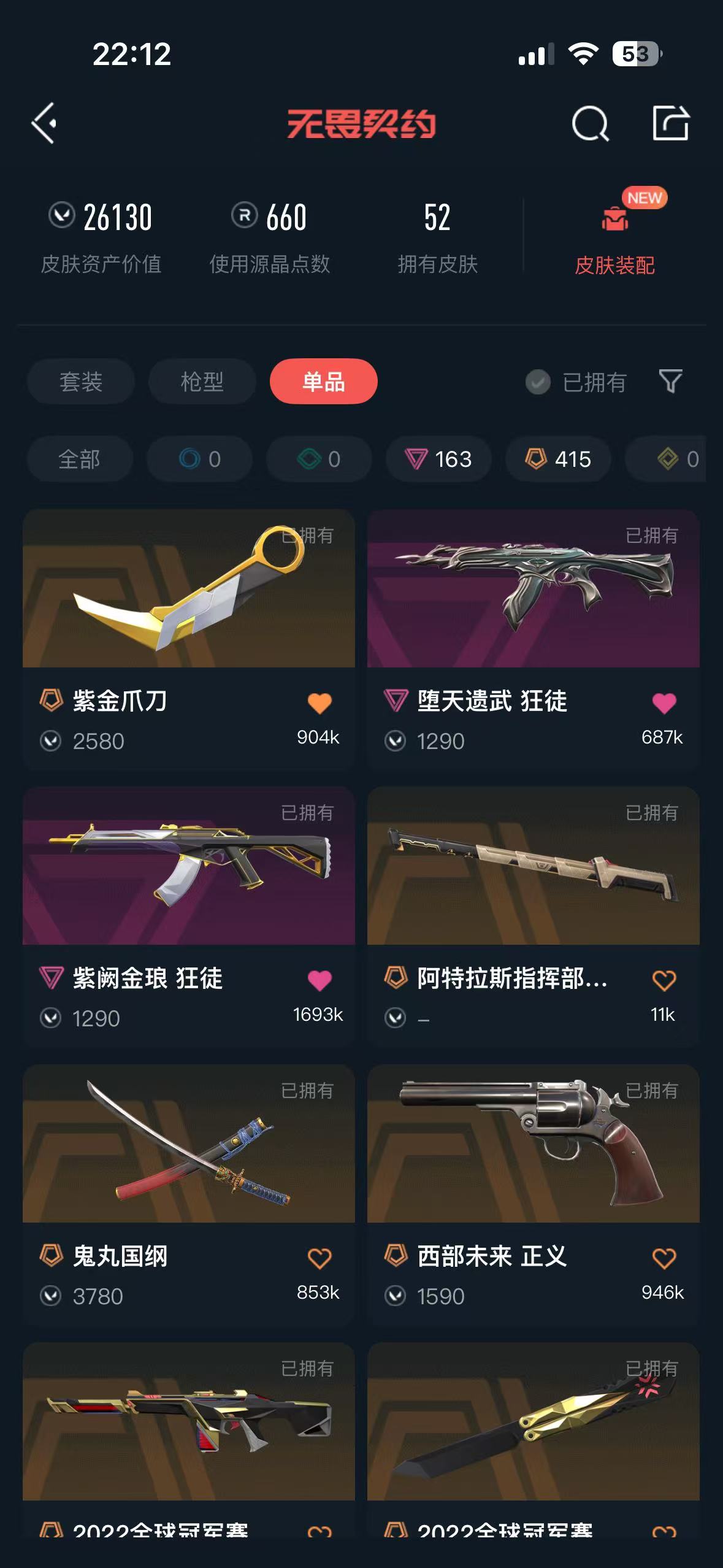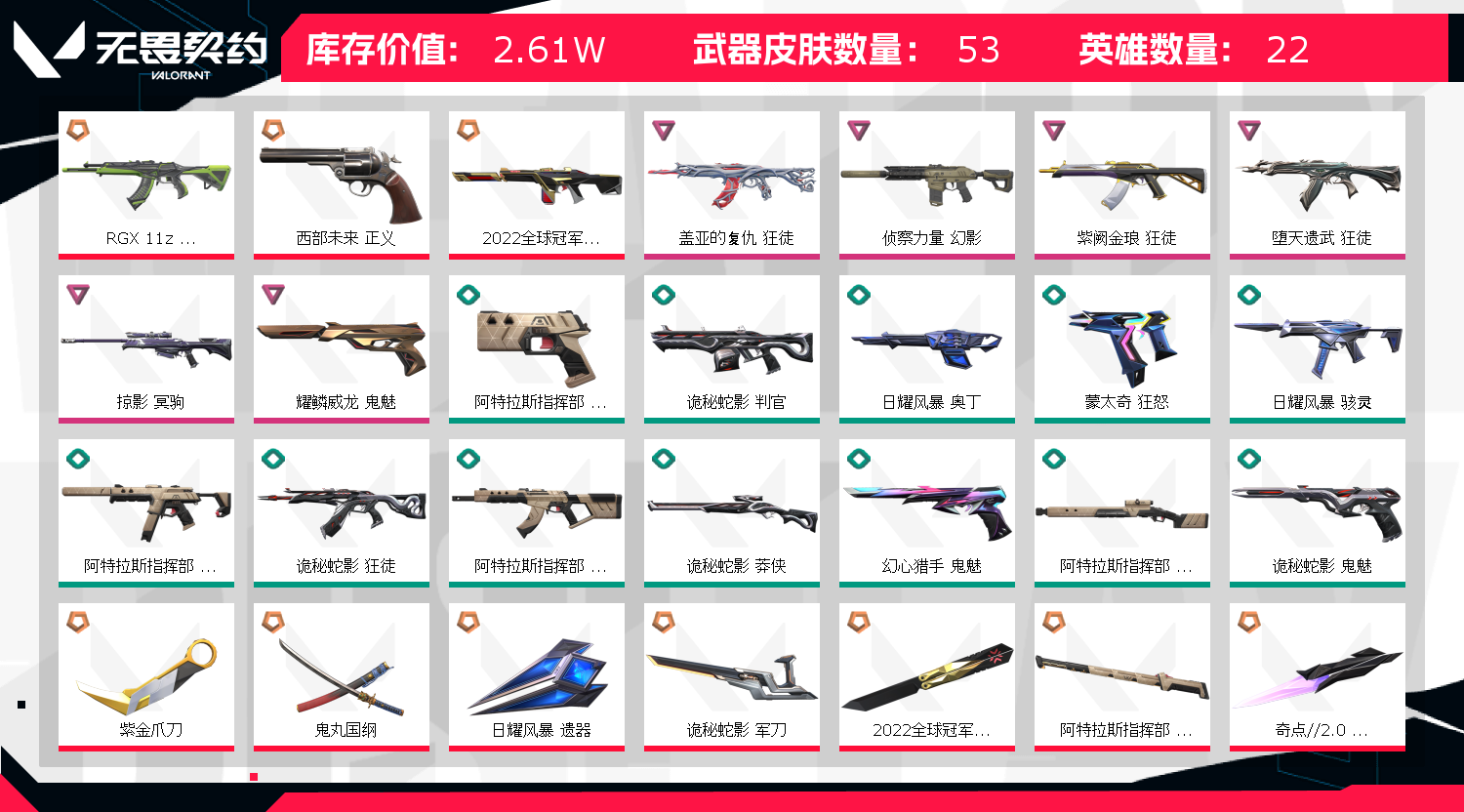 • 皮肤资产价值: 26130