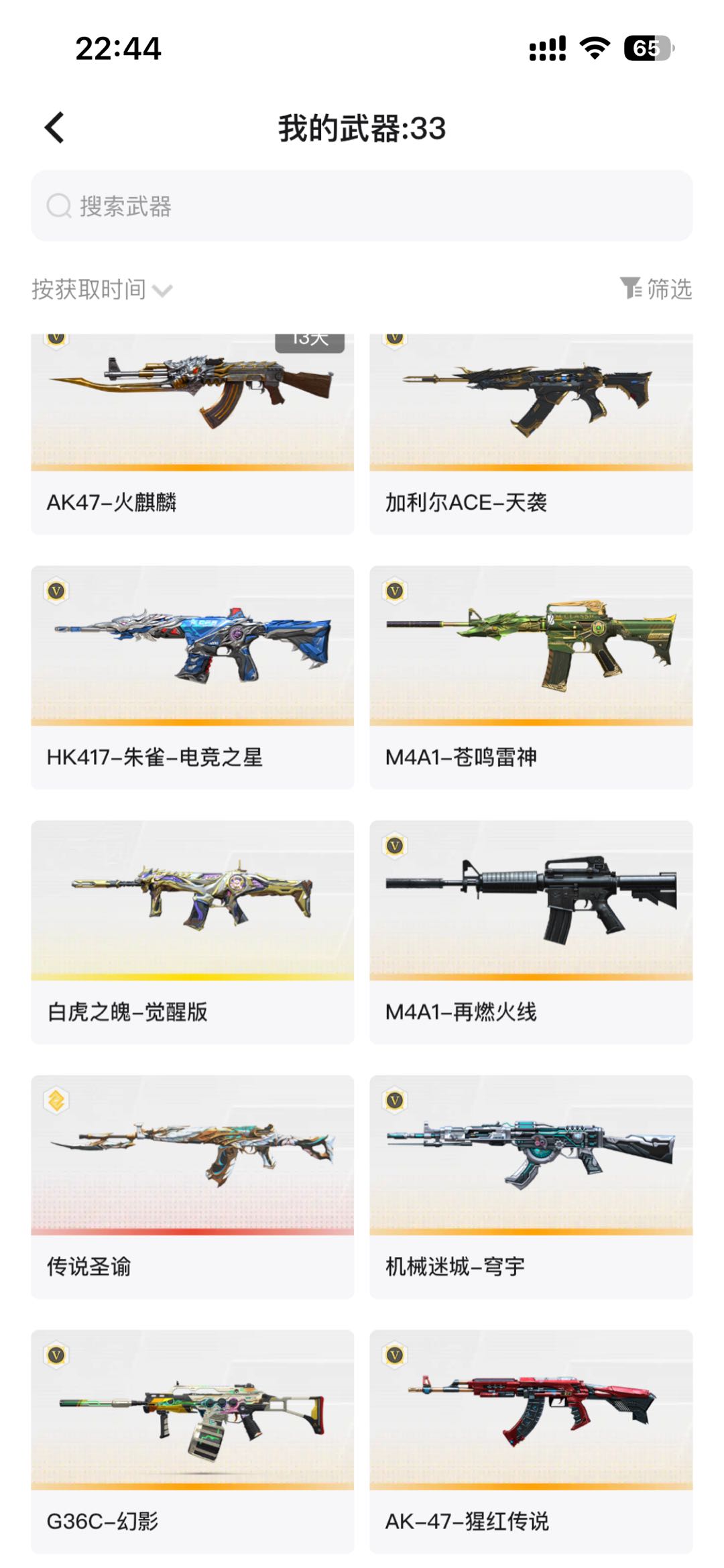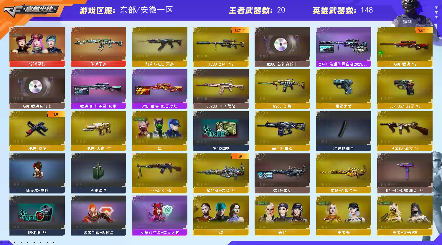 5盘龙六列龙;传说星骇,隼,RPK-盘龙,QBZ03-金色蔷薇,G36C-幻影,M200-幻神,加利尔ACE-天袭,