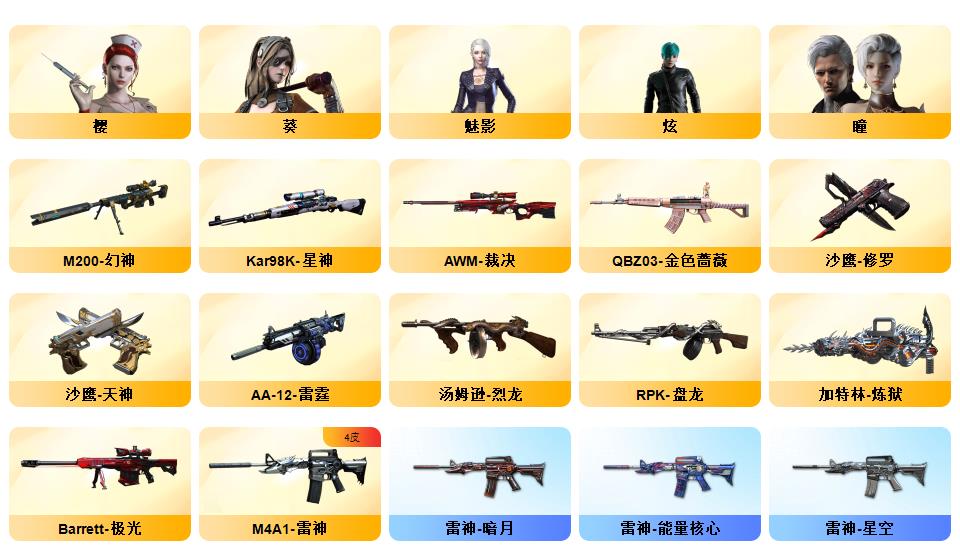 幻兽套+幻神+星神+QBZ蔷薇+6烈+6炼狱