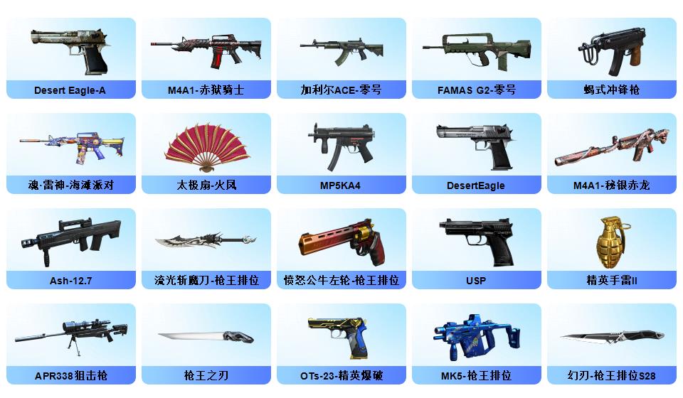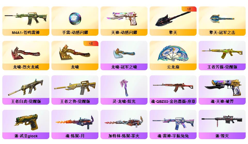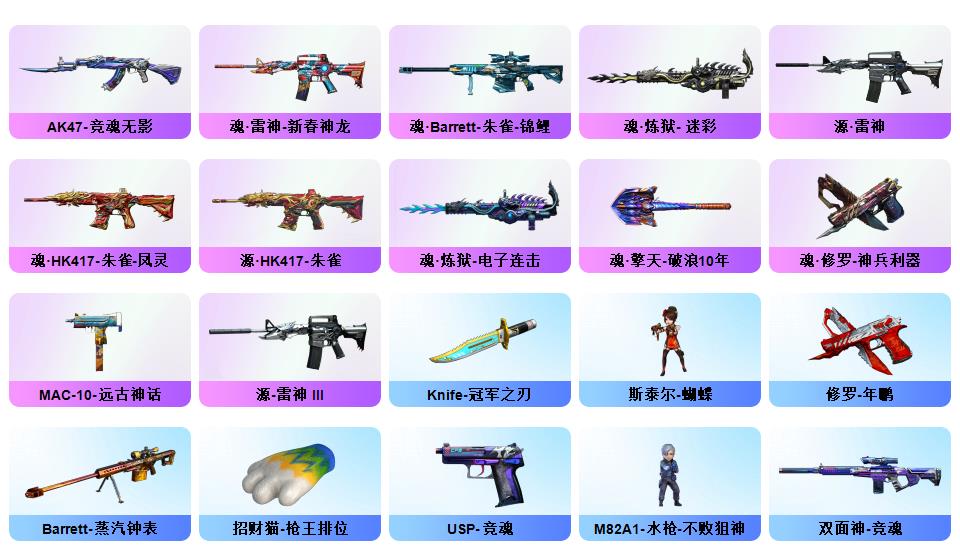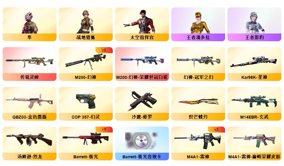 传说灵眸/M200-幻神/幻神世冠白鲨/幻神冠军之幻/Kar98K-星神/王者白虎/玄武/qbz/6烈龙+蝴蝶/炽芒蝶刃/王者芳薇/冠军之刃*2