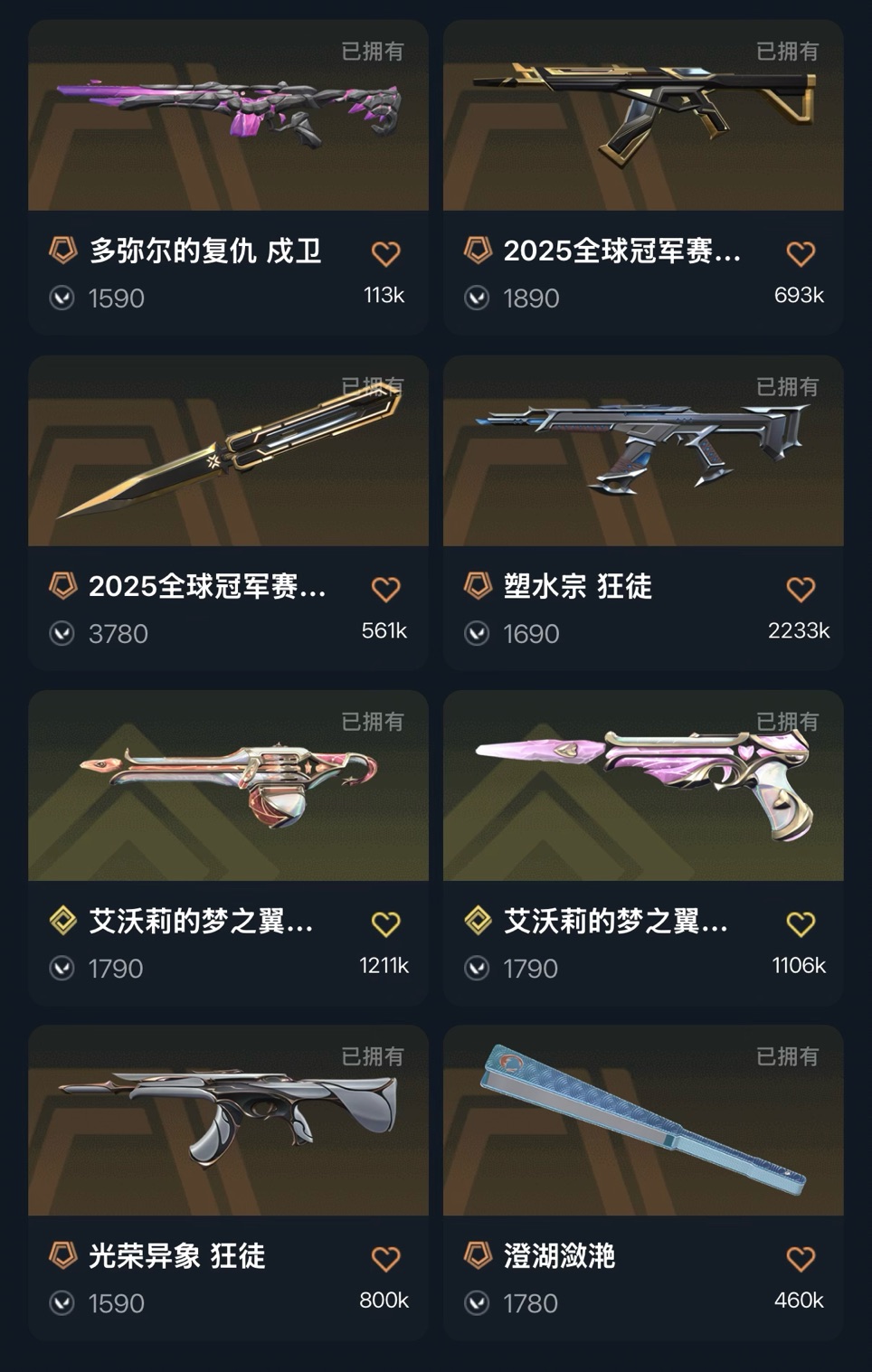 英雄27 武器皮肤数量19 光荣塑水猫咪全套25冠军;艾沃莉的梦之翼 奥丁,紫阙金琅 狂徒,塑水宗 狂徒,光荣异象 狂徒,掠影 正义,