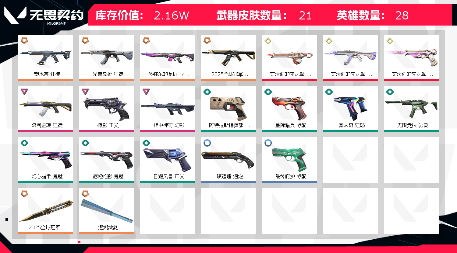 • 皮肤资产价值: 21560