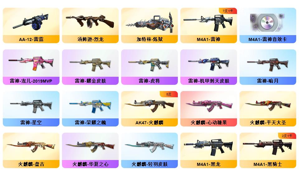 传说艾丽莎/传说暗裔/幻神+黄忠+巅峰荣耀+音效卡/白虎+ag+暗星+音效卡/qbz+枪娘阿敏+音效卡/王者星神/柯尔特经济荣光*6/usp神工天巧*2/cop堕天神/