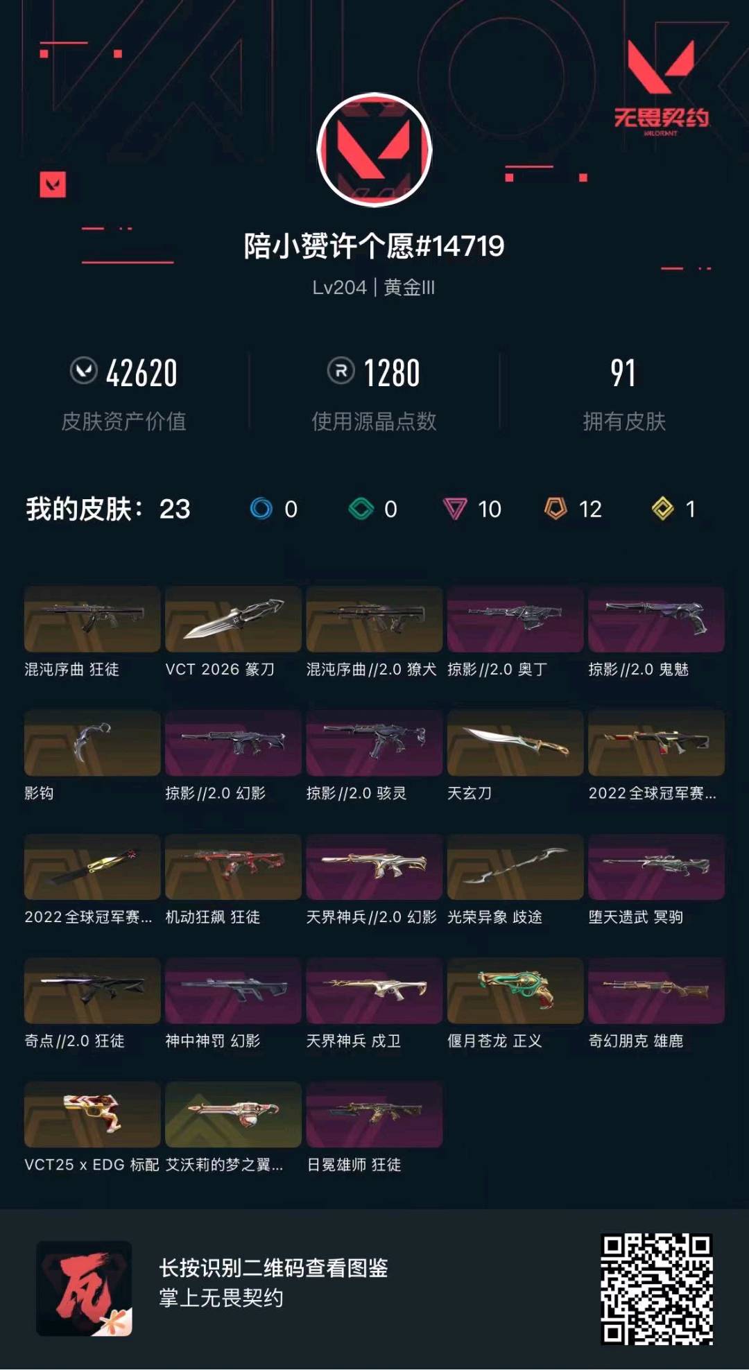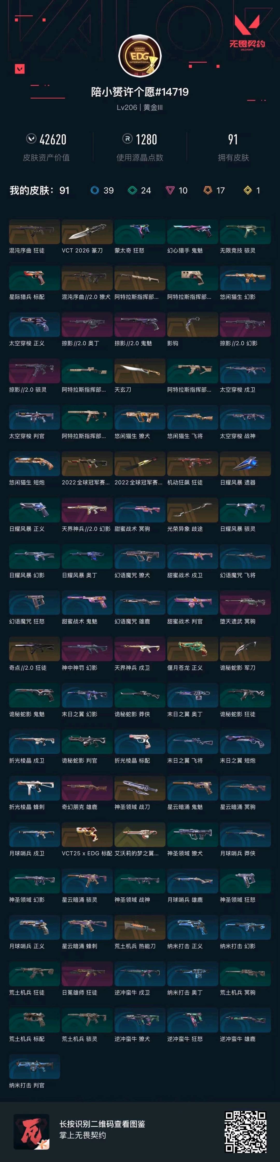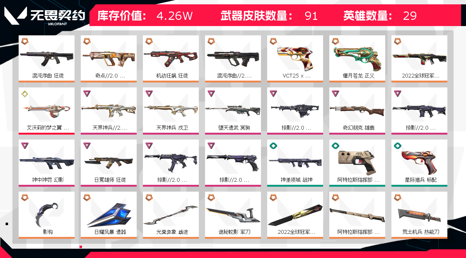• 皮肤资产价值: 42620