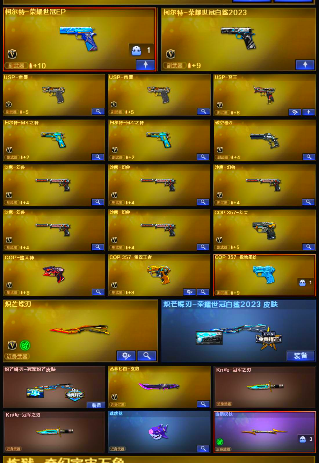 极品双字ID♥3传说幻神EP10皮带卡♥幻兽套×5♥满质量手枪星神5皮带卡裁决巅峰流光带卡♥蝴蝶刀;USP-雷暴,柯尔特-荣耀世冠白鲨2023,柯尔特-冠军之特,炽芒蝶刃,Knife-冠军之刃,传说星骇,传说艾莉莎,