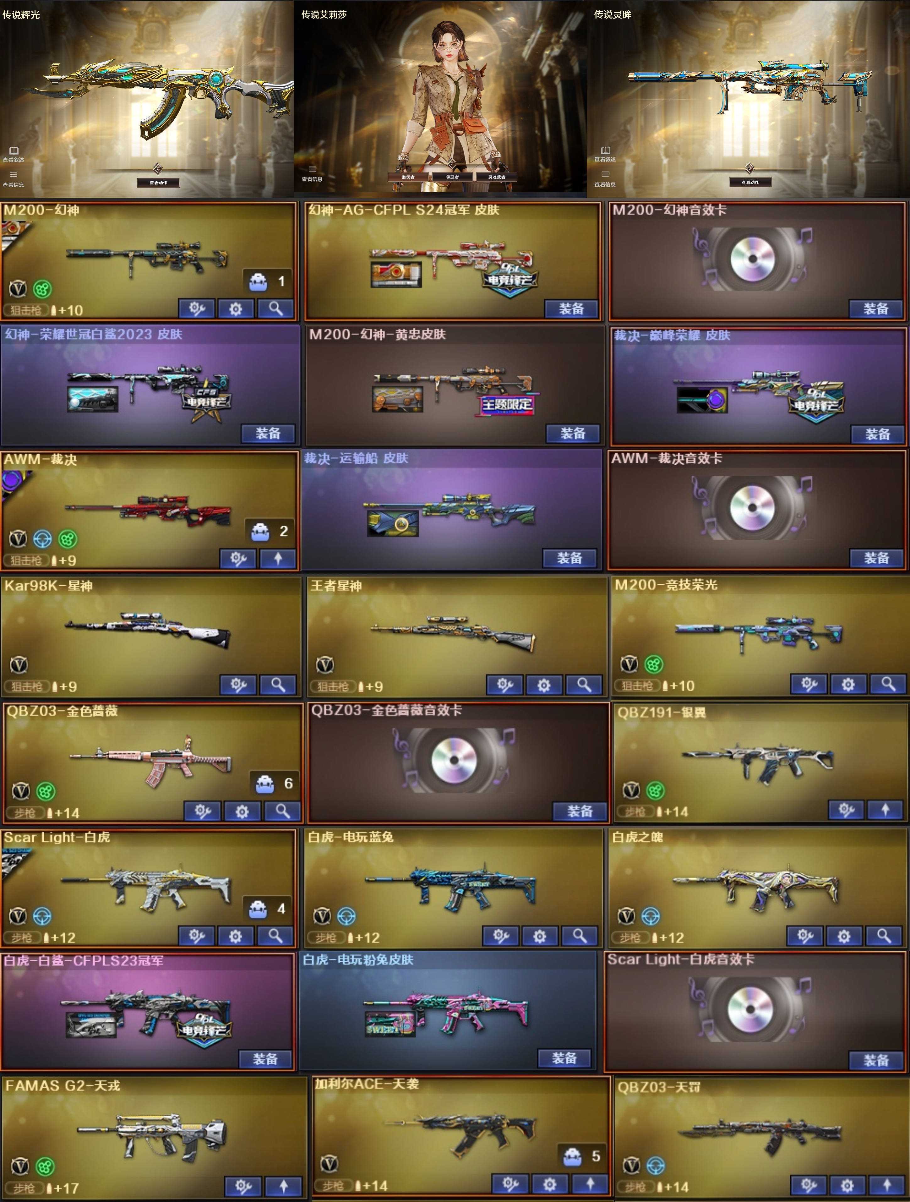 【西部】传说艾莉莎辉光灵眸⭐幻神套裁决套星神*音⭐白虎套QBZ音银翼QBZ⭐加利尔天戎⭐