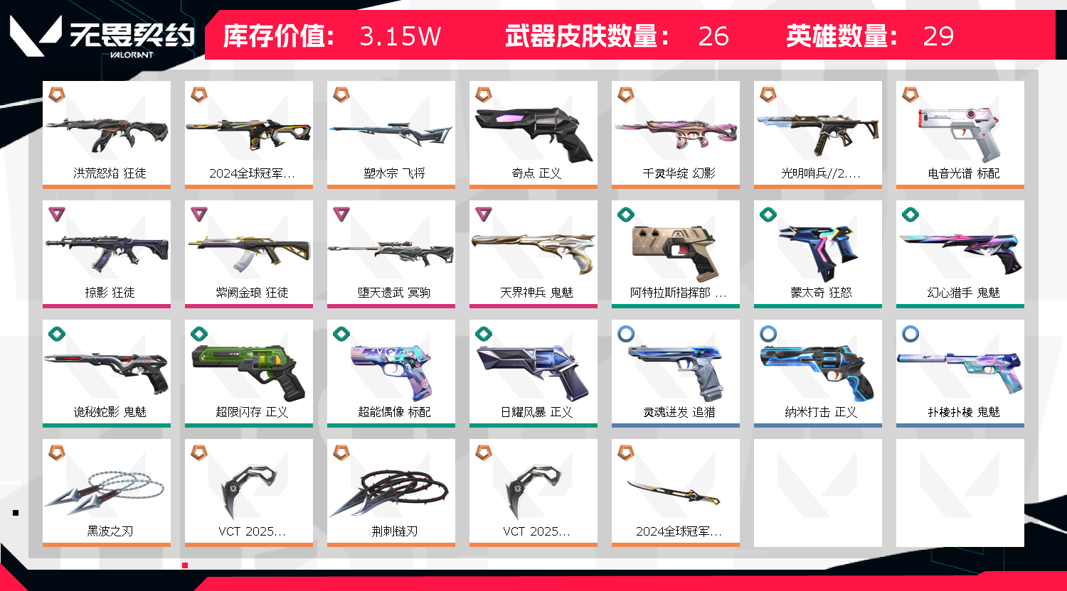 喜欢商品的点点收藏哦!!! 禁止炸鱼,逃跑,违规拉黑! 本人多年商户,所属账号禁止开挂,开挂封号报警处理!;黑波之刃,VCT 2025 爪刀,洪荒怒焰 狂徒,掠影 狂徒,紫阙金琅 狂徒,2024全球冠军赛 幻影,塑水宗 飞将,