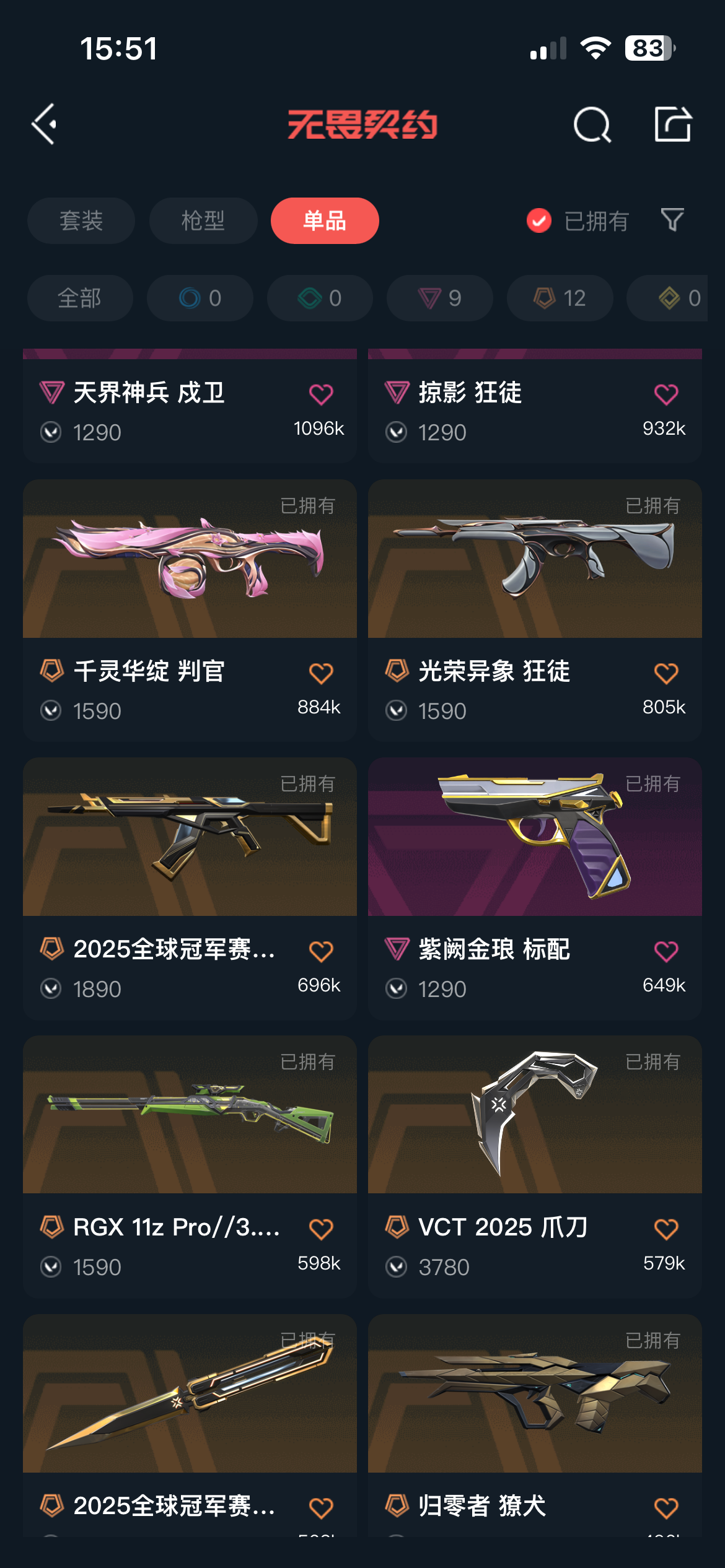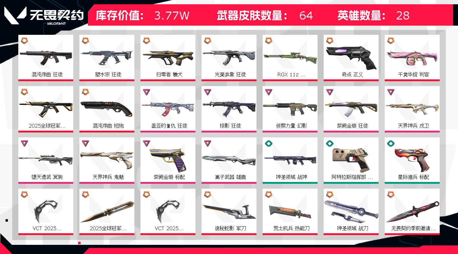 如遇冻结请申请号主协助;VCT 2025 爪刀,归零者 獠犬,盖亚的复仇 狂徒,掠影 狂徒,侦察力量 幻影,紫阙金琅 狂徒,天界神兵 戍卫,
