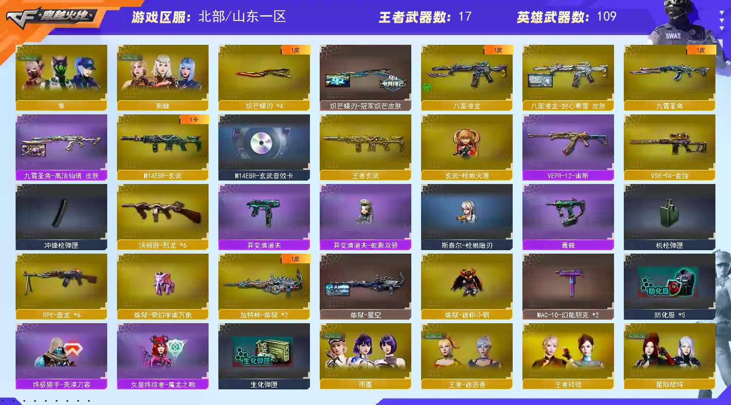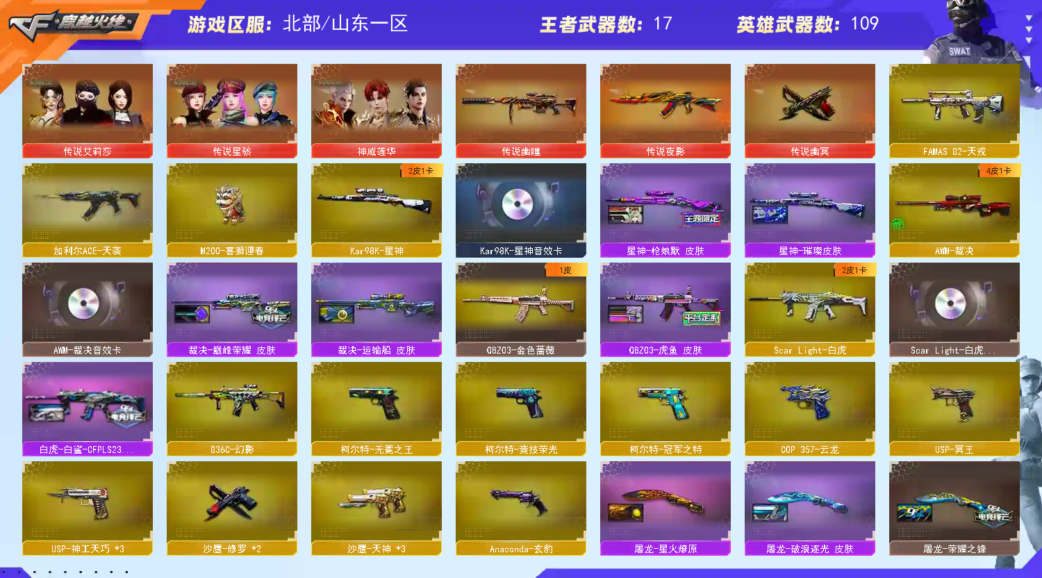 神威莲华艾莉莎炼狱泡泡象4炽芒蝶刃蛇影双娇清道夫毒蜂♥传说幽瞳裁决巅峰荣耀;柯尔特-无冕之王,传说幽冥,柯尔特-冠军之特,炽芒蝶刃,传说星骇,隼,电竞教官-云悠悠,