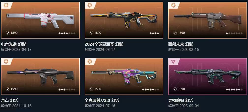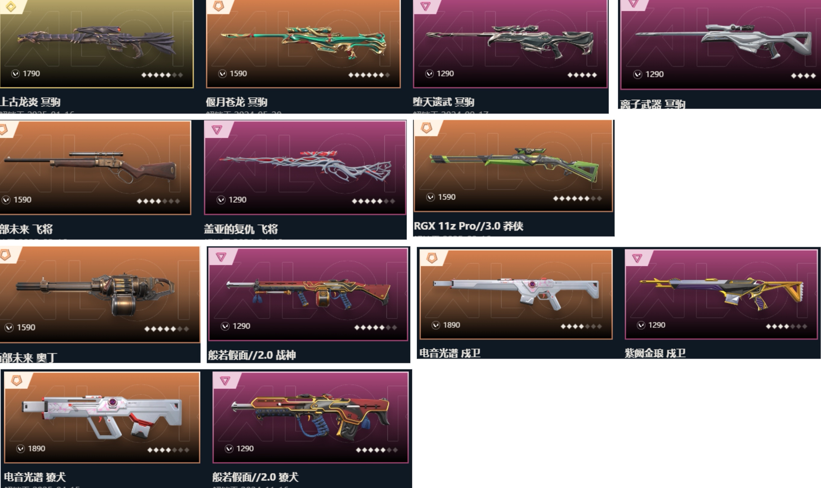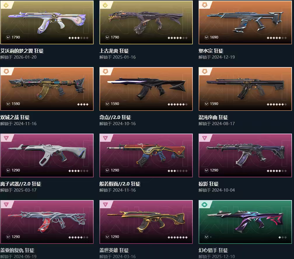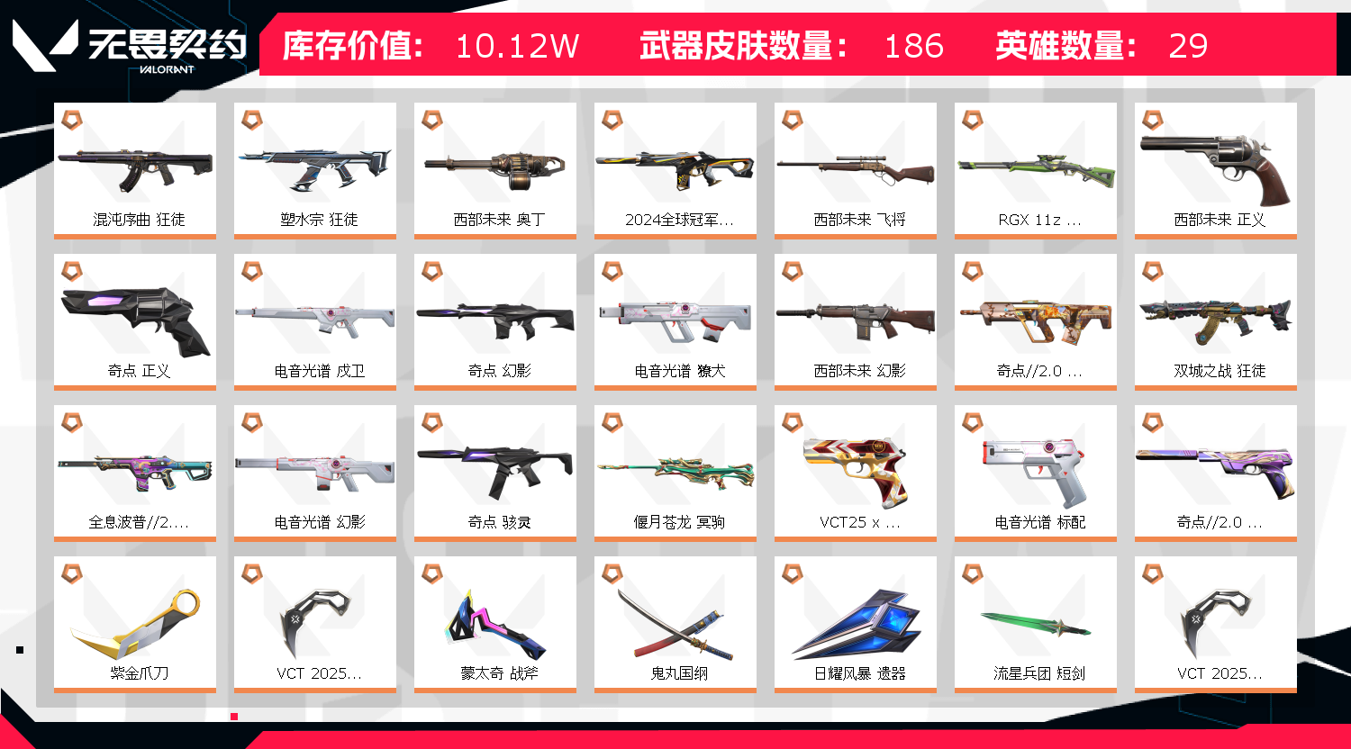 1;西部未来 奥丁,紫金爪刀,VCT 2025 爪刀,起源 雄鹿,上古龙炎 判官,盖亚的复仇 狂徒,掠影 狂徒,