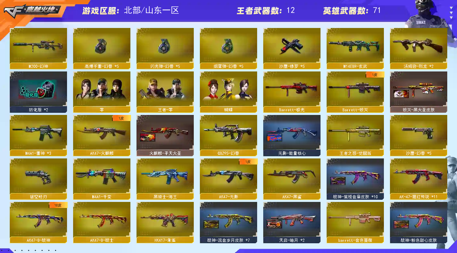 • 游戏区服:穿越火线 / 网通区 / 山东一区