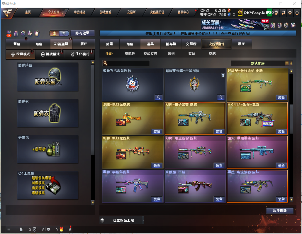 首页 > 租号大厅 > 穿越火线 > 西部/陕西一区 > 127V幻神新皮肤权【幻影】【白虎3件套】【幻神6皮+卡周瑜/黄忠/荣耀世冠/纸灯龙/电流骇客】星神