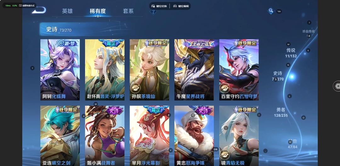 V10、550皮14水、吕布典藏-千魇归渊、云缨-神骥·越千峰、怪盗基德、伽罗星传说红枫、瑶典藏拾光映像、冥王哈迪斯、、龙年限定、齐天大圣