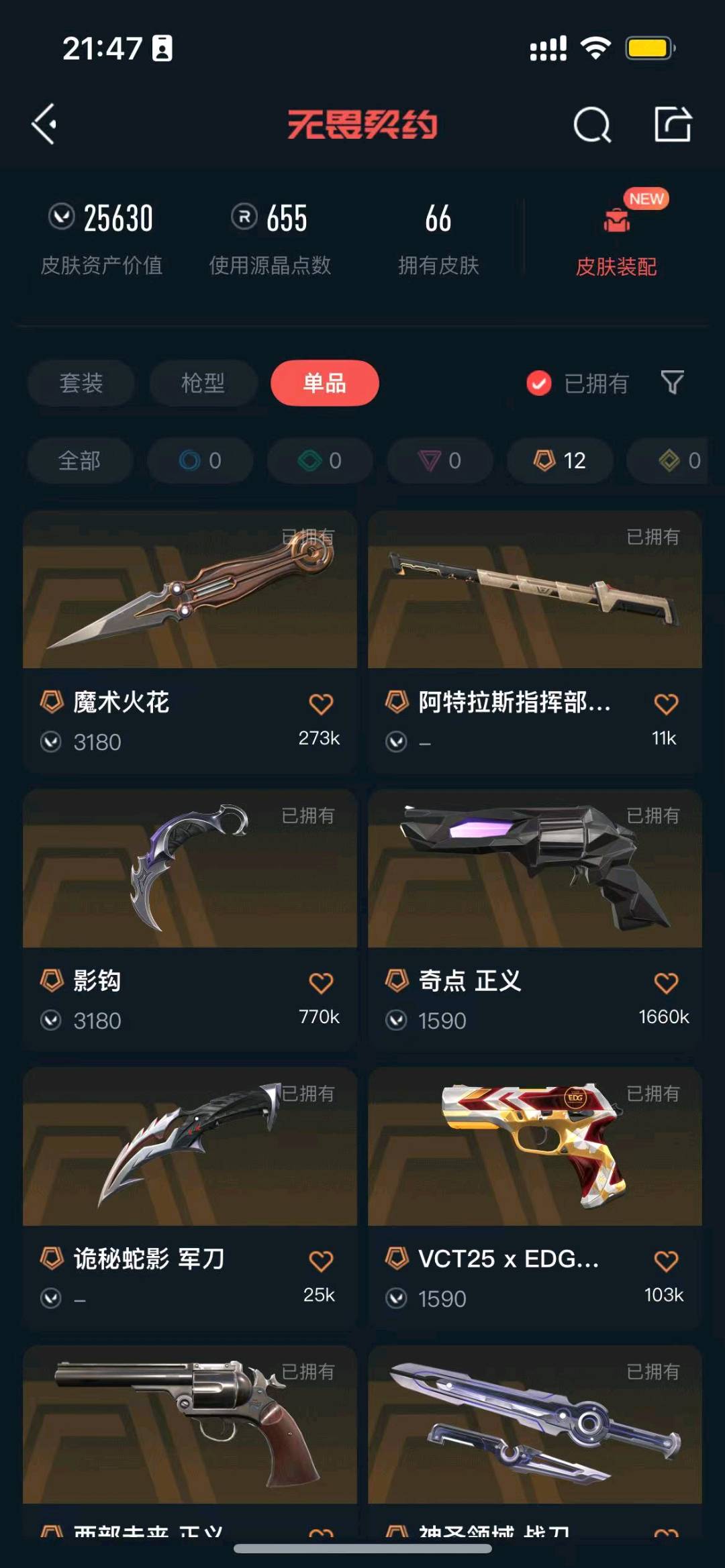 • 皮肤资产价值: 25630