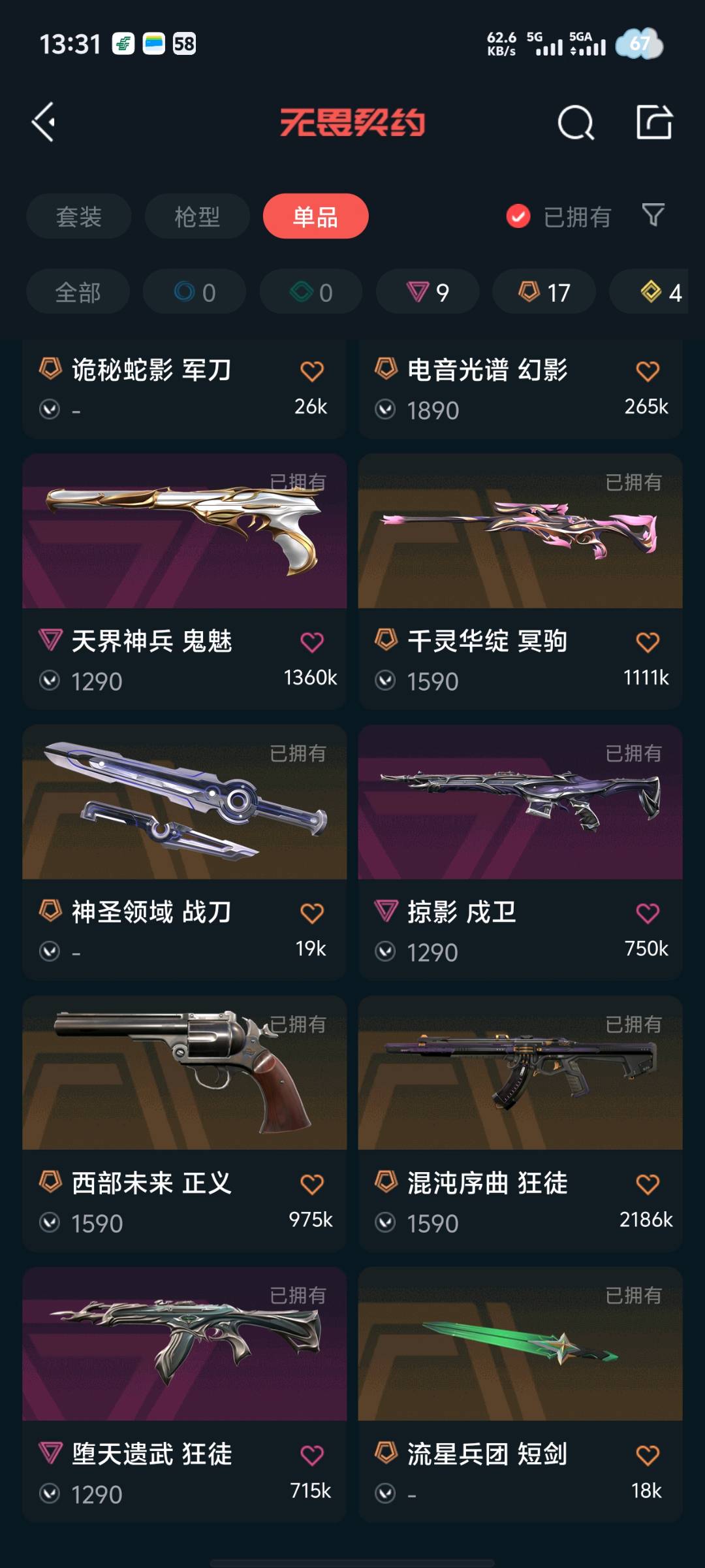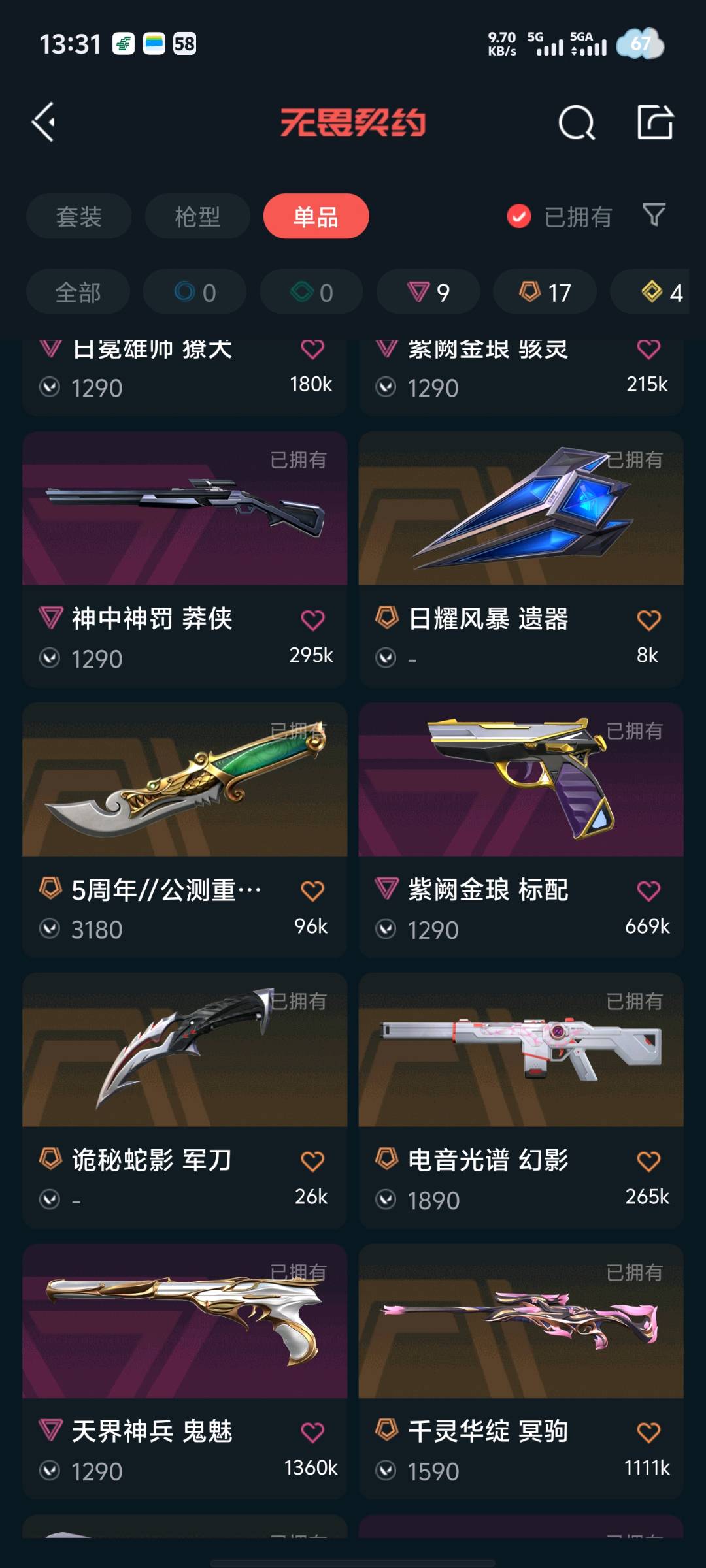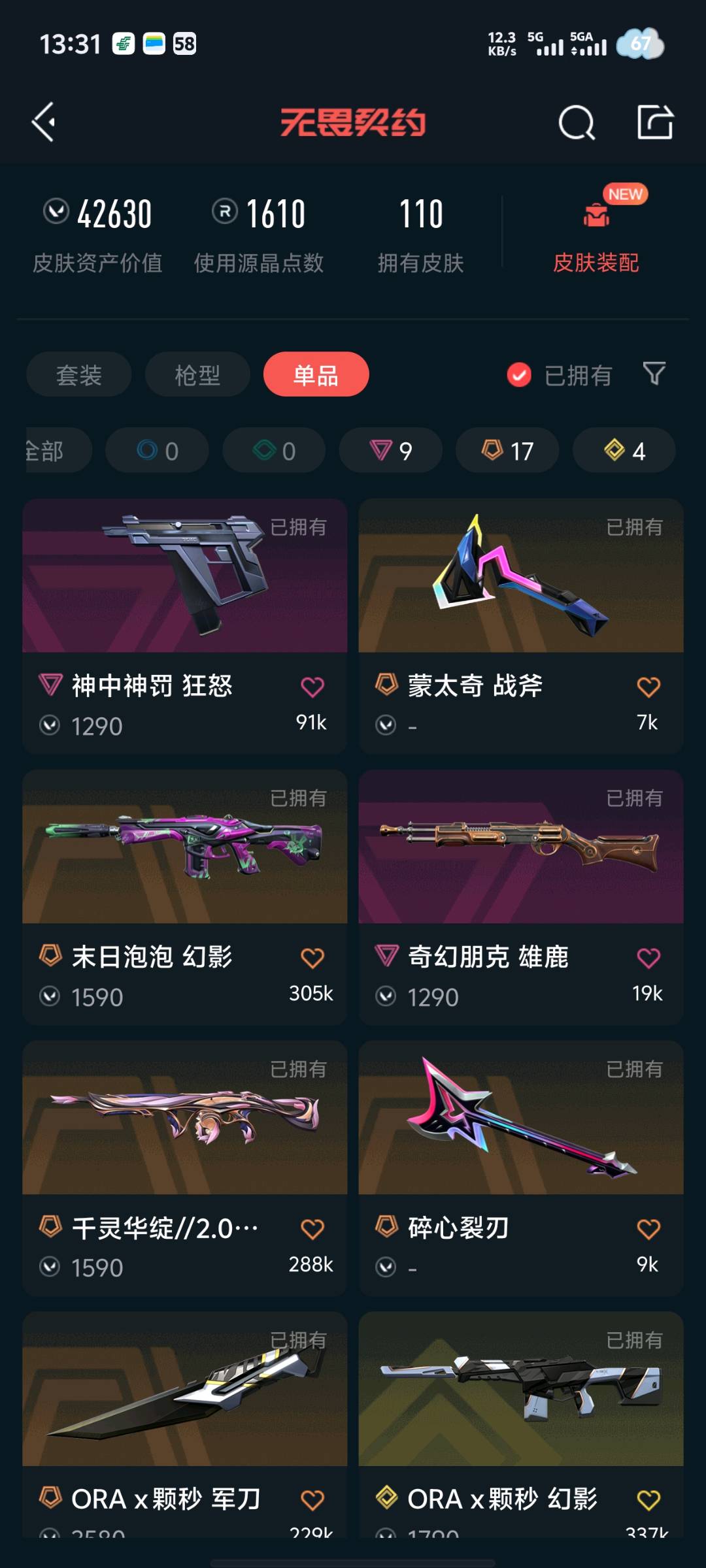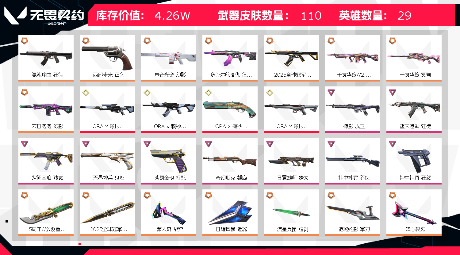 • 皮肤资产价值: 42630