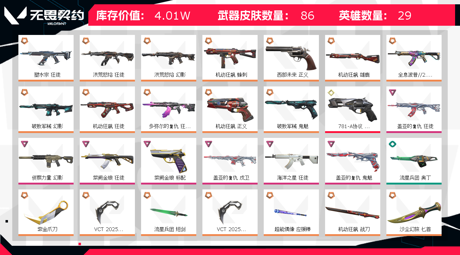 • 皮肤资产价值: 40130