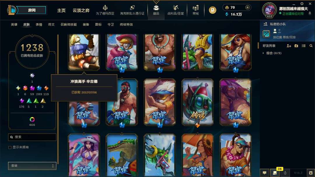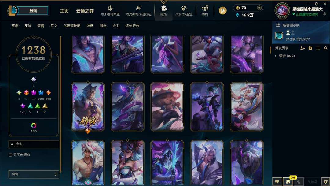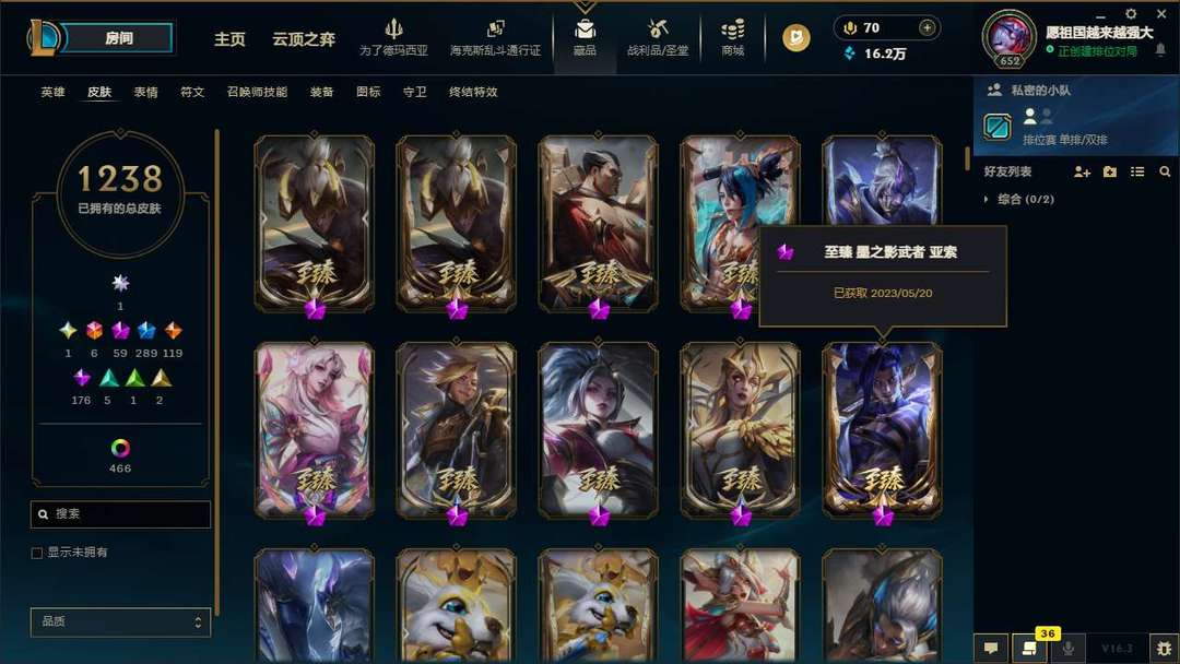 真实1700+皮肤坚韧黑铁4///0剩点,佛耶戈王 创世神亚索 圣洁神王 等等…