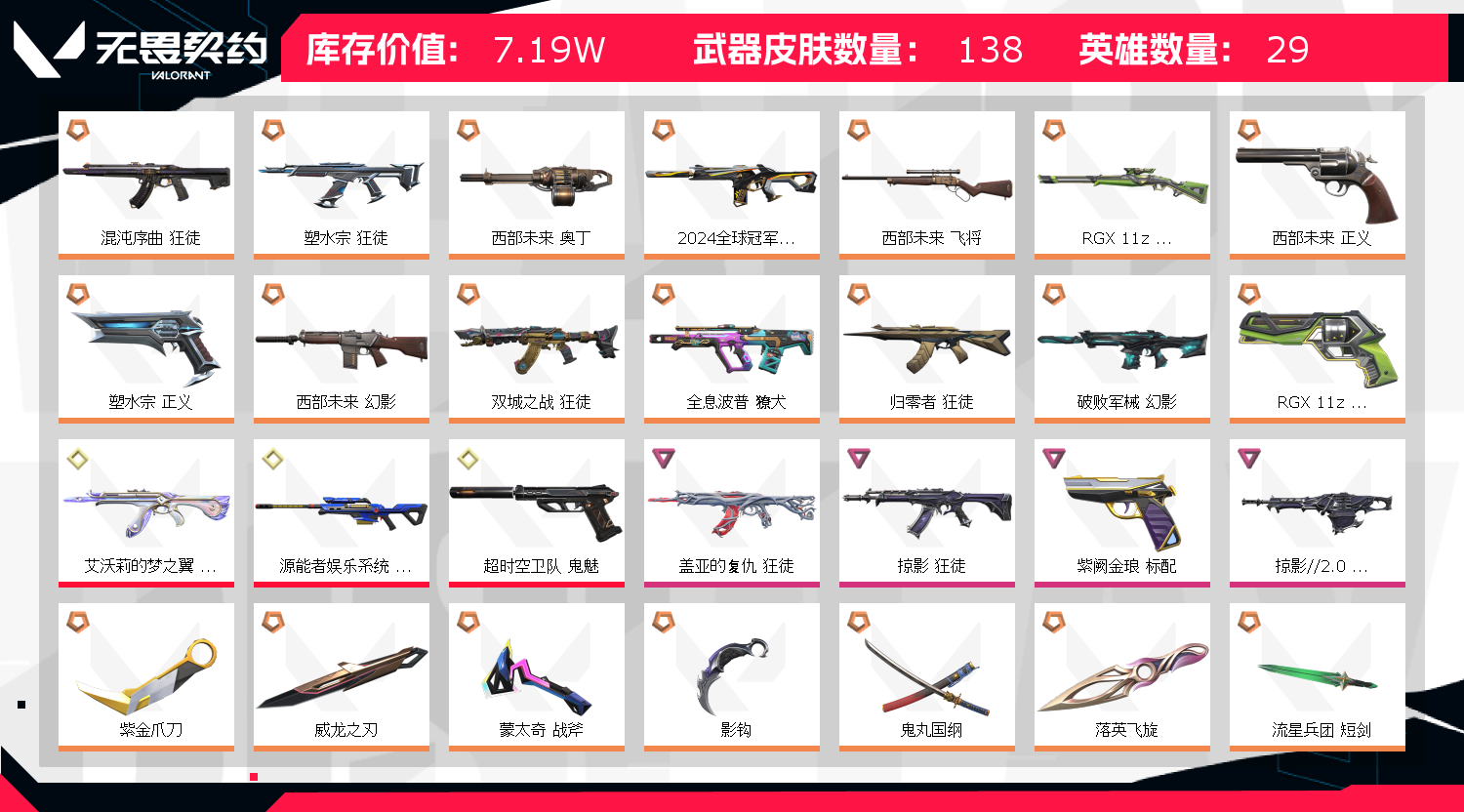 • 武器皮肤数量: 138