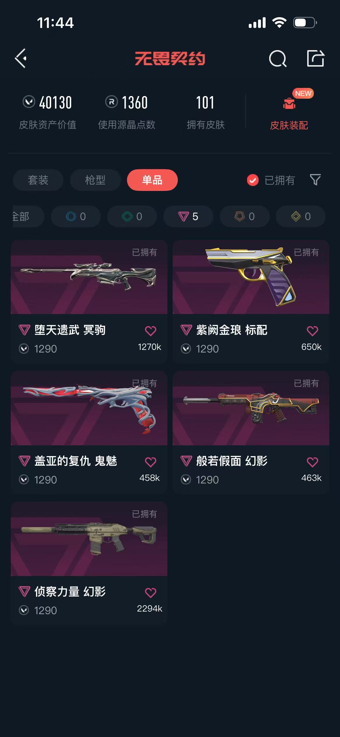 • 皮肤资产价值: 40130