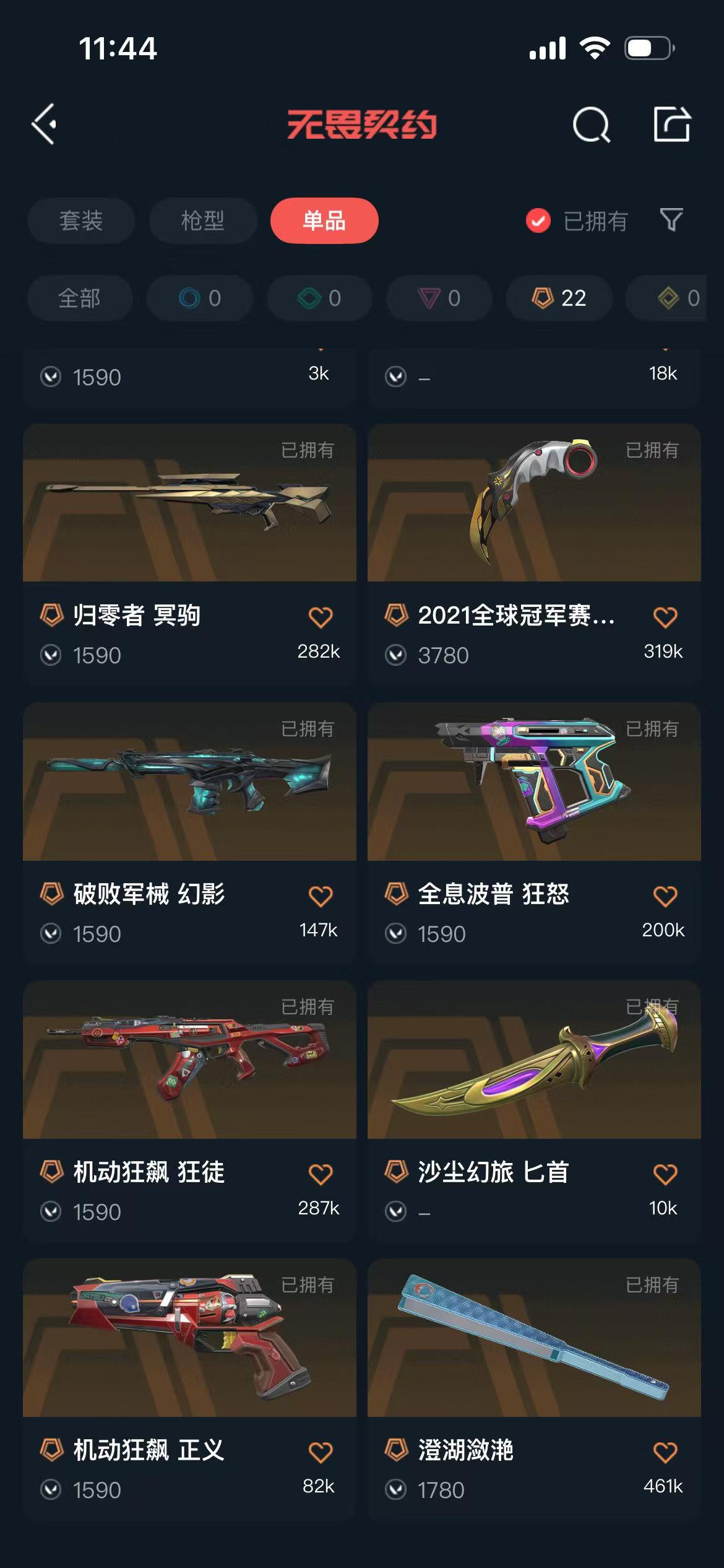 • 传奇数量: 22