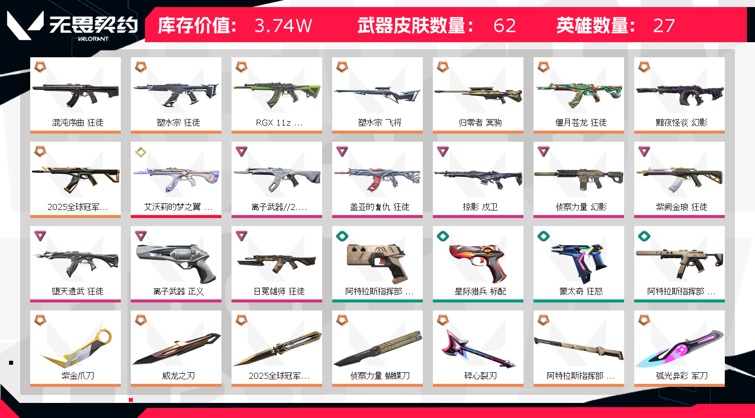 • 游戏区服:无畏契约-wegame / wegame / wegame