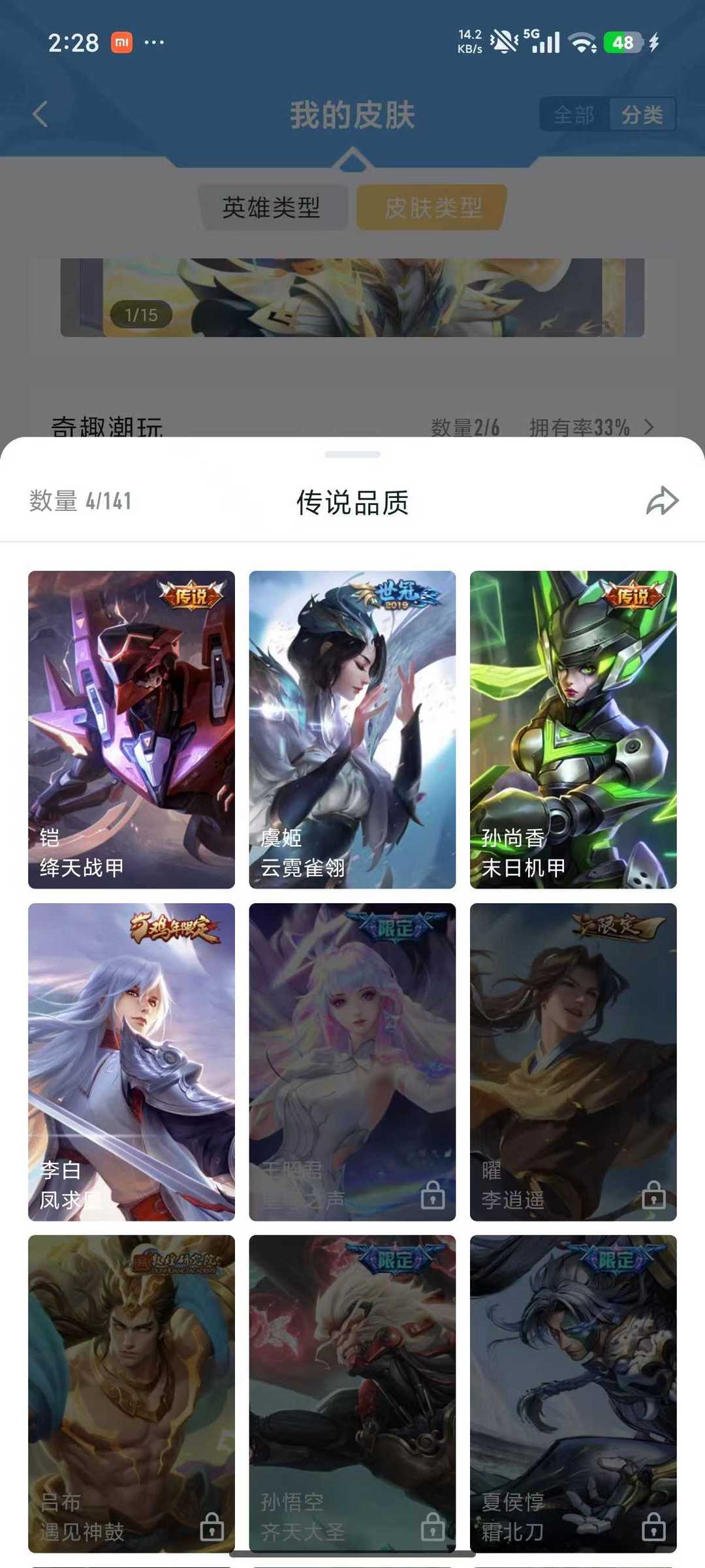 v10、537皮6水4无双、安琪拉-颠倒童话·魔镜、朵莉亚-神骥、遇见神鼓、齐天大圣、白虎志、韩信荣耀典藏、73传说、时之魔女、瑶无双、青丘、九尾、神器明辉仪