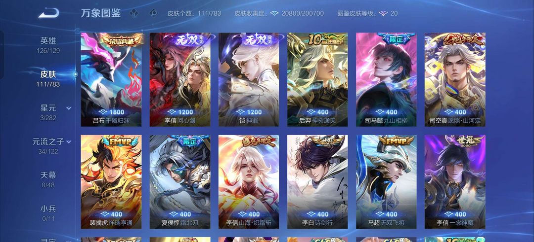 吕布典藏。凯神罪.李信无双问心剑.李信全套皮肤.暃埋骨钱.司马懿全套皮服.夏侯惇霜北刀.皮肤看图片