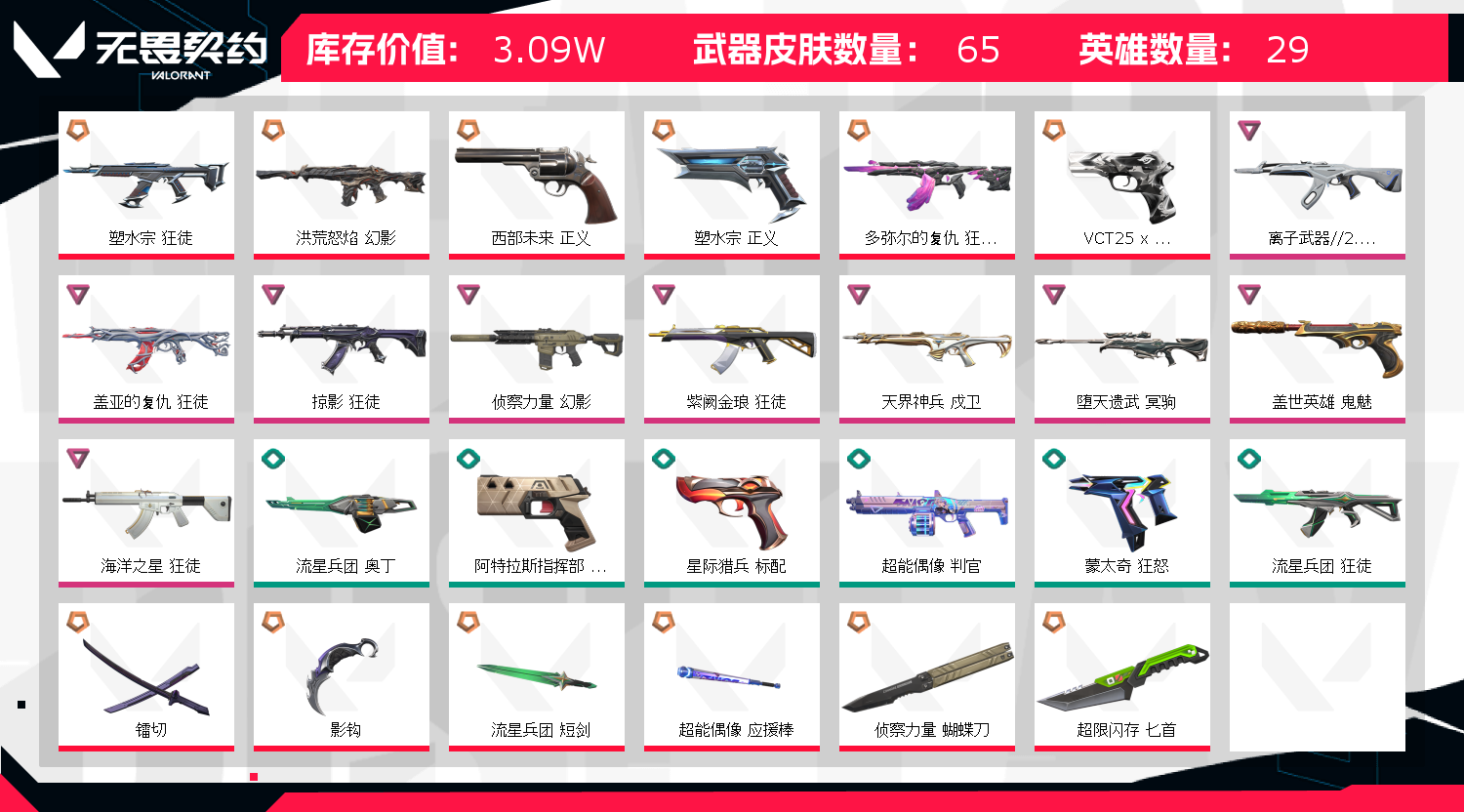 首页 > 租号大厅 > 无畏契约-wegame > wegame/wegame > 盖亚 鱼缸 石头等七把热门狂徒 流脓 侦查幻影 掠夺刀 雷切等六把刀皮 弃王大狙可排位