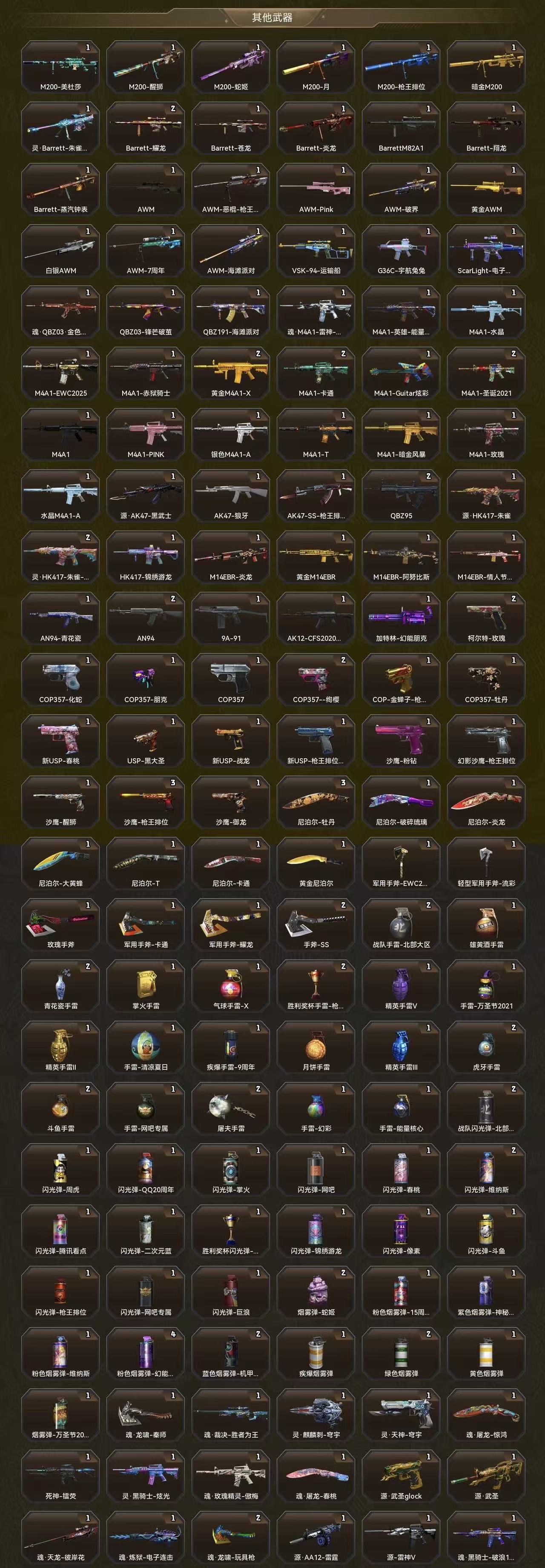✅幻神✅⑥烈龙✅暗月传说✅QBZ03-金色蔷薇✅云龙✅雷霆✅挑战✅王者小人枪✅炫金武器✅音效卡