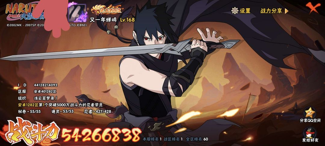 首页 > 租号大厅 > 火影忍者 > QQ账号/QQ账号 > 神驹斑5425万战力无上,全服榜前60,全忍者,魅力值87星级都在榜,满属攻速通团本