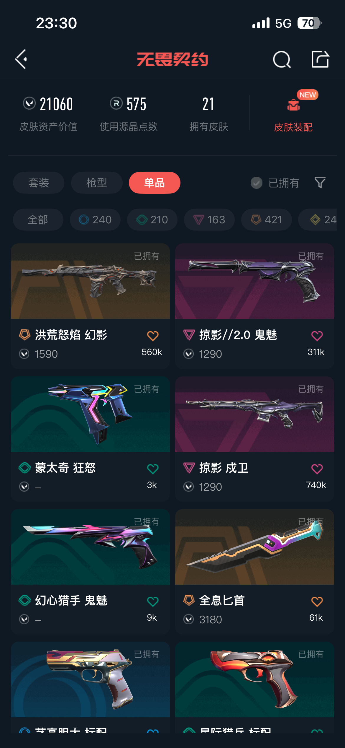 • 皮肤资产价值: 21060