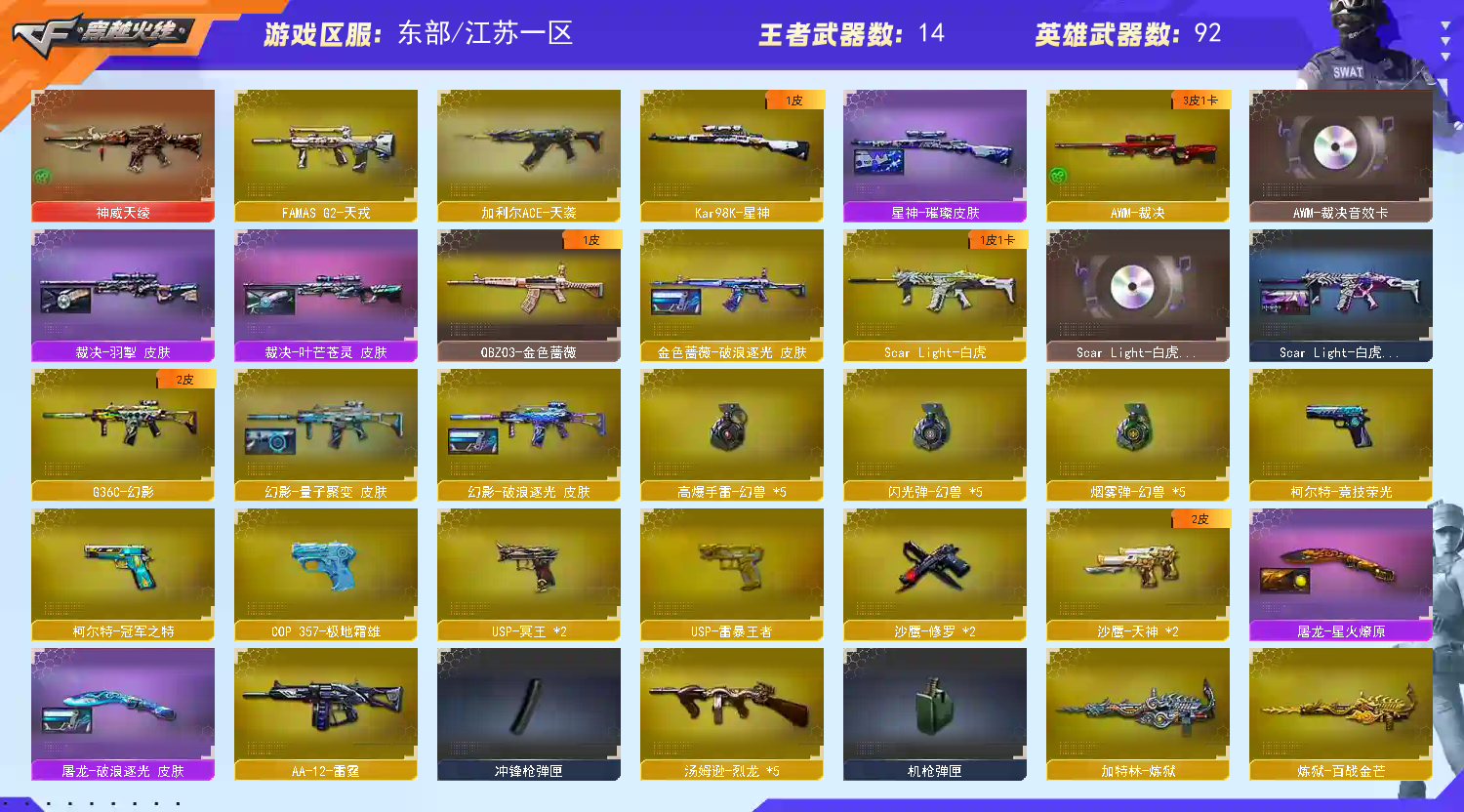 • 游戏区服:穿越火线 / 东部 / 江苏一区