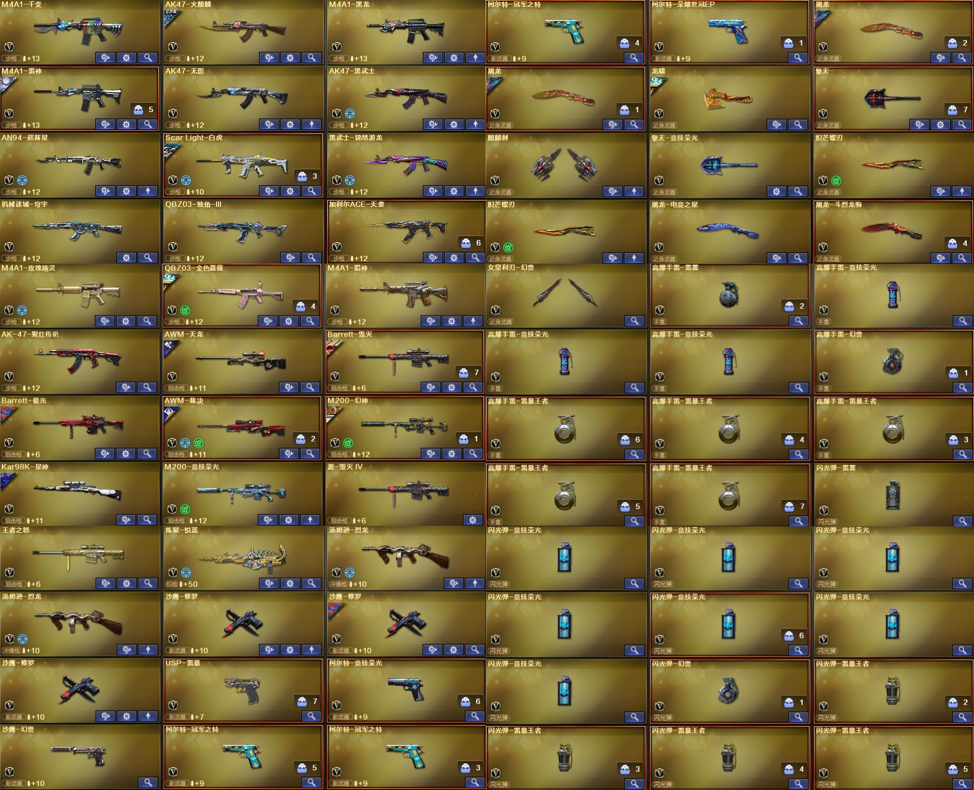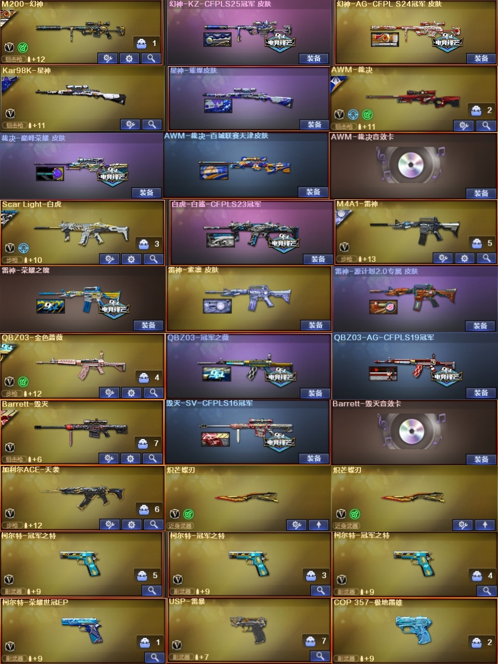 ★收藏好评! 由于异地登录保护机制,部分客户在使用客户端自动上号时会出现密码错误,注意本号密码不会错误,请多尝试5-6次!本账号已经过虚拟财产认定,请各位科技大神高抬贵手。请素质租号,文明游戏,谢谢大家配合!!;USP-雷暴,柯尔特-冠军之特,炽芒蝶刃,QBZ03-金色蔷薇,M200-幻神,Scar Light-白虎,加利尔ACE-天袭,