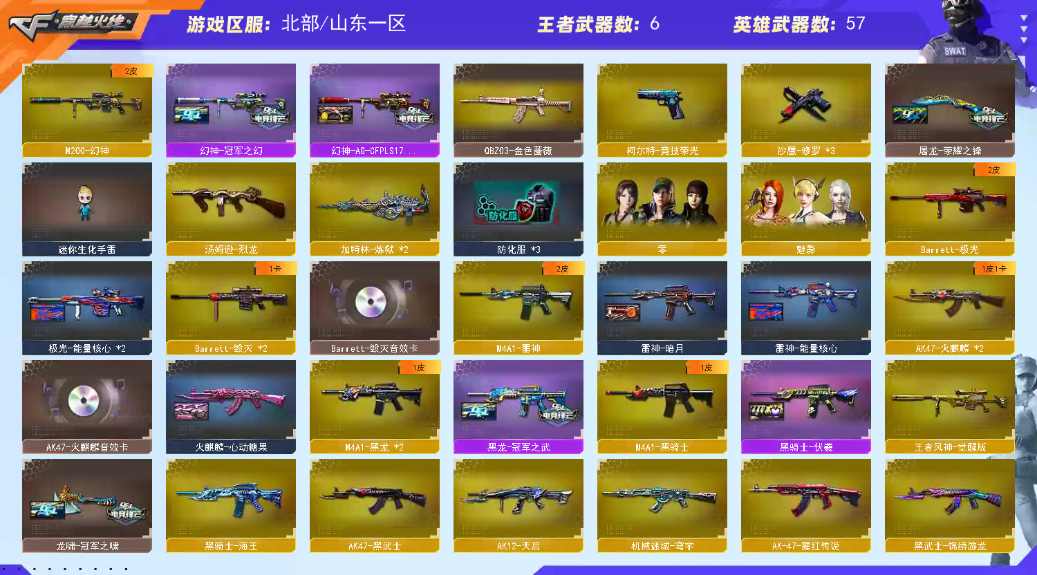 北部❤幻神+冠幻+ag17冠军【王者风神】【qbz金色蔷薇】【朱雀】【火麒麟+卡】黑龙+冠军之武
