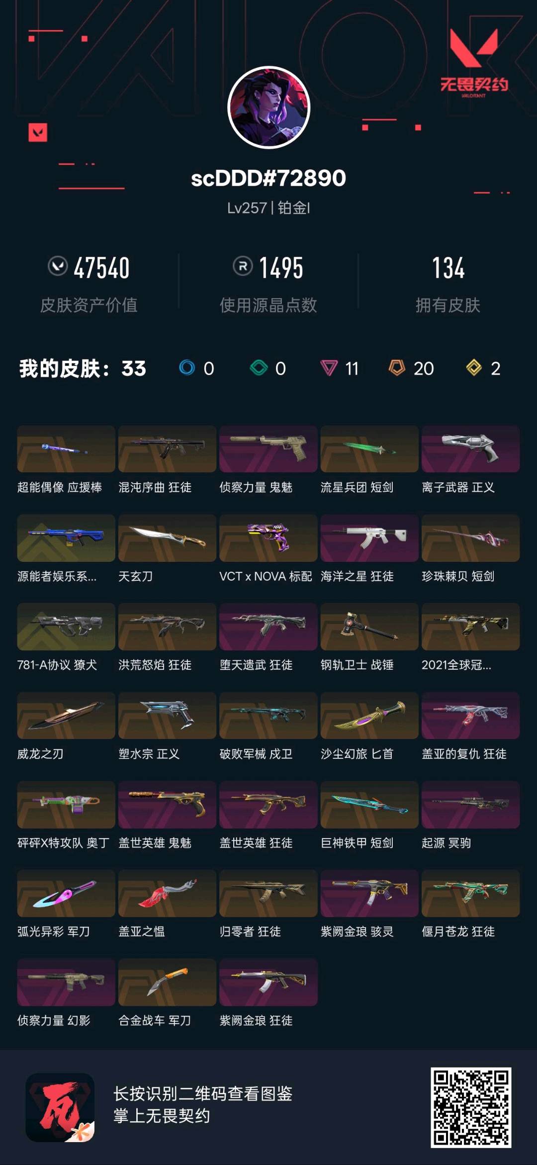 • 皮肤资产价值: 47540