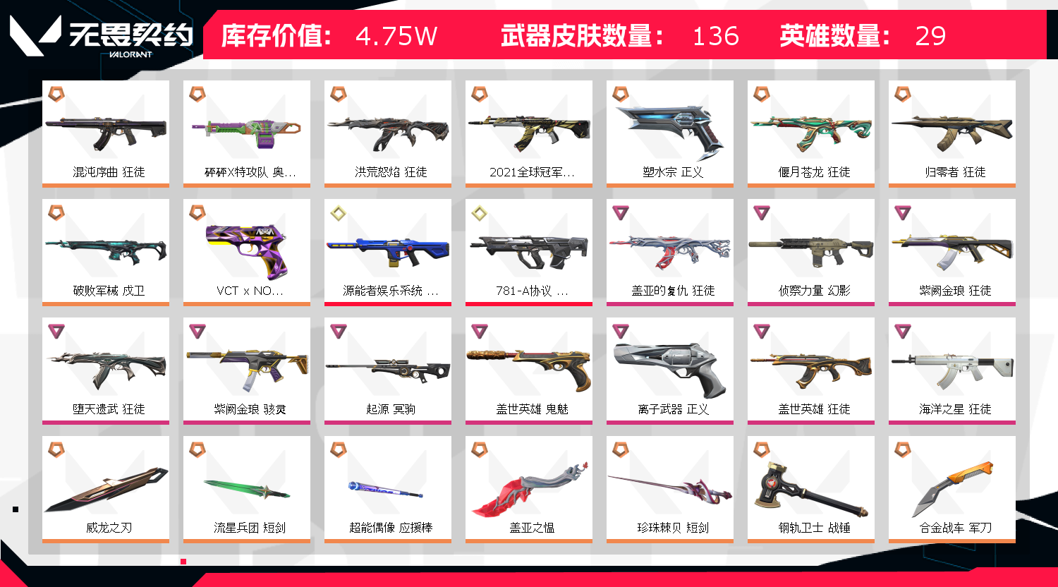 • 武器皮肤数量: 136