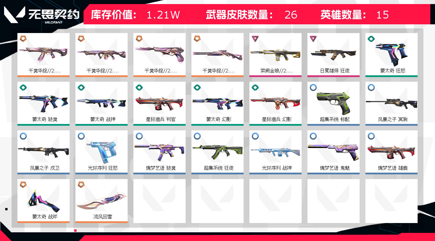 首页 > 租号大厅 > 无畏契约-wegame > wegame/wegame > 可排位 英雄13 武器皮肤数量23