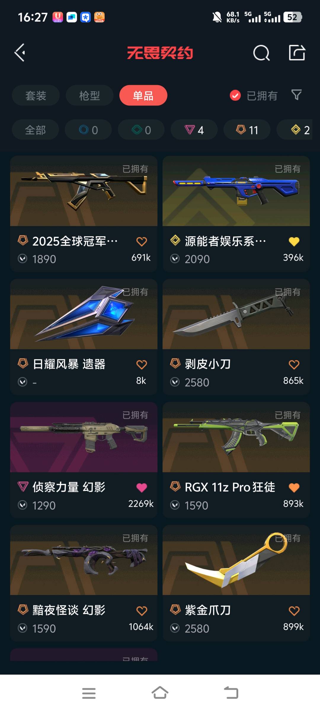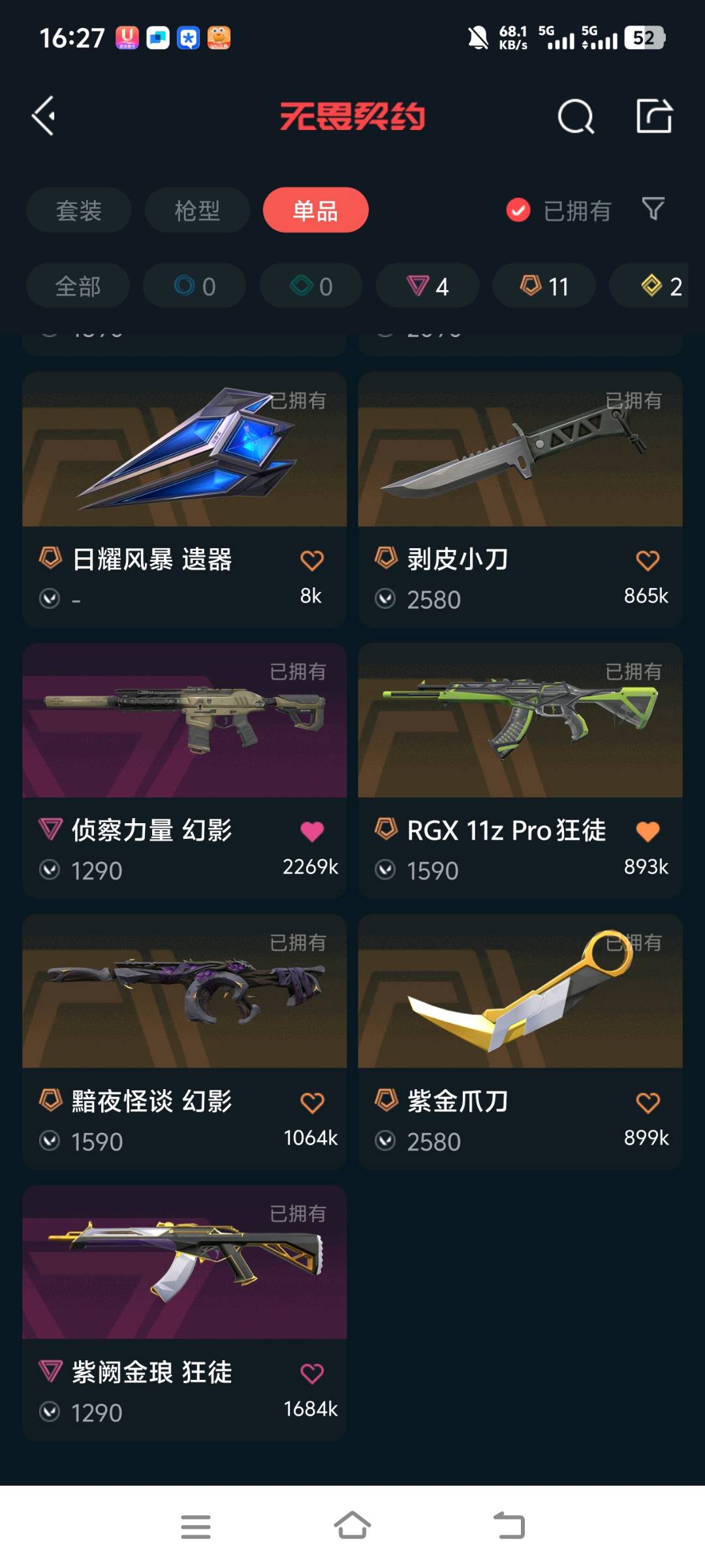 有实力的大哥下手轻点,谢谢;紫金爪刀,剥皮小刀,源能者娱乐系统 幻影,侦察力量 幻影,紫阙金琅 狂徒,RGX 11z Pro 狂徒,盖世英雄 鬼魅,