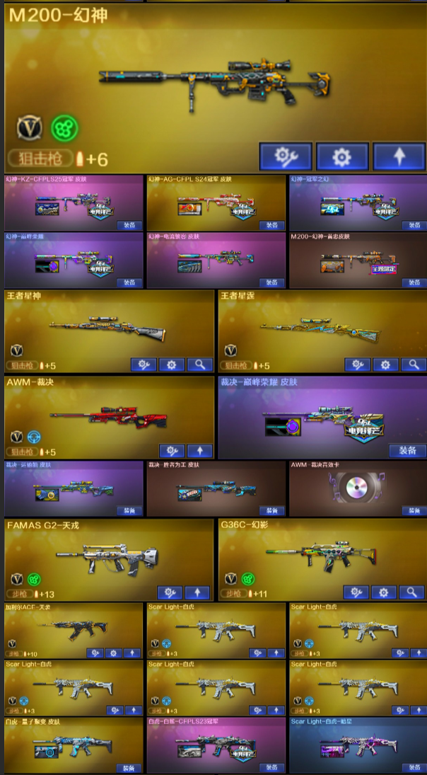 女帝幻兽套/传说灵眸/满配副手/幻神6皮/裁决三件套/加利尔/法玛斯/G36幻影/虎鱼臻藏雷神主流全