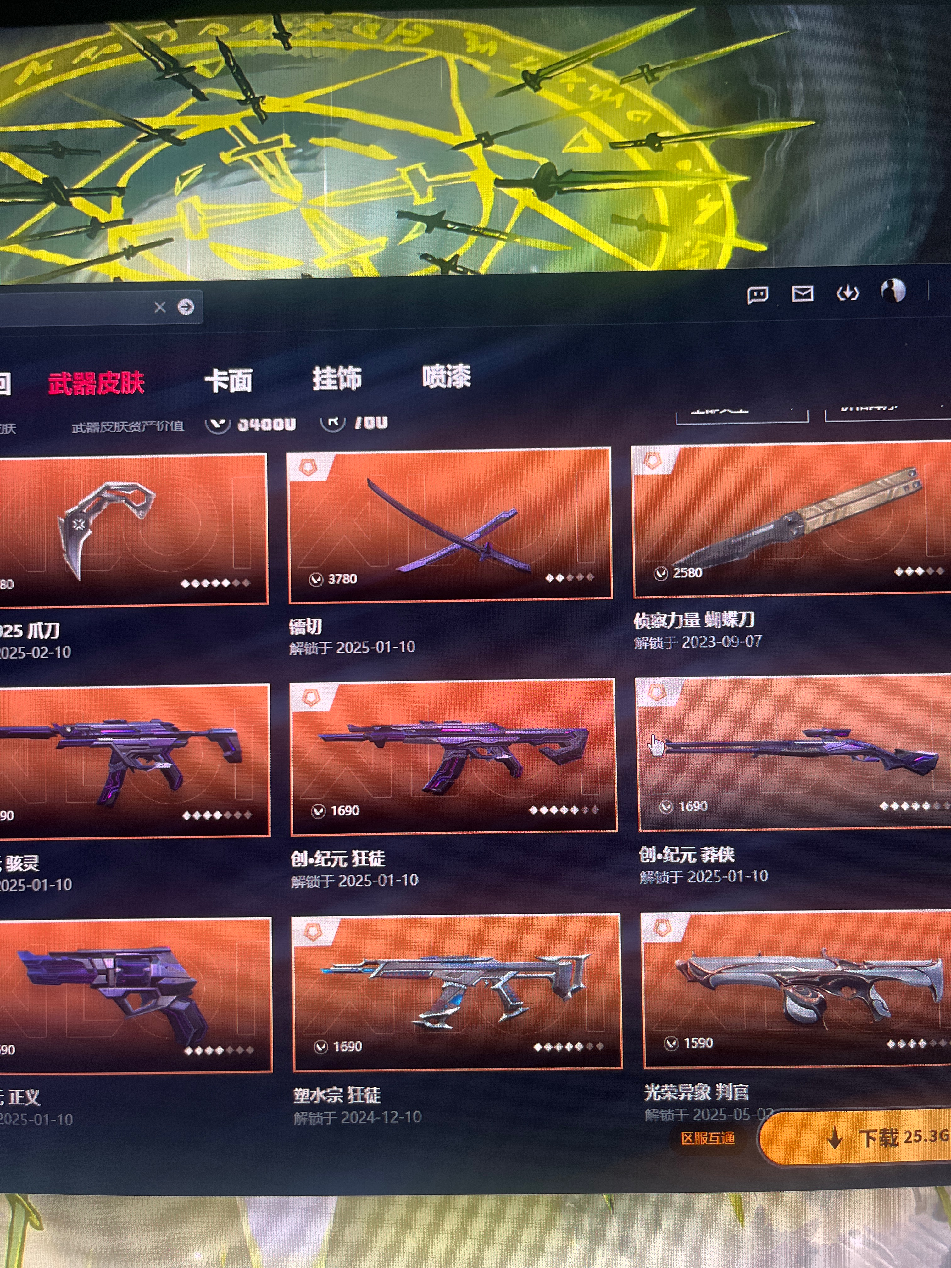 低段位账号|带炫酷刀皮+优质枪皮|低段位乱杀带妹神器|性价比拉满,随时上号畅玩!;镭切,VCT 2025 爪刀,异鳞魔蛇 幻影,侦察力量 幻影,混沌序曲 狂徒,塑水宗 狂徒,西部未来 正义,