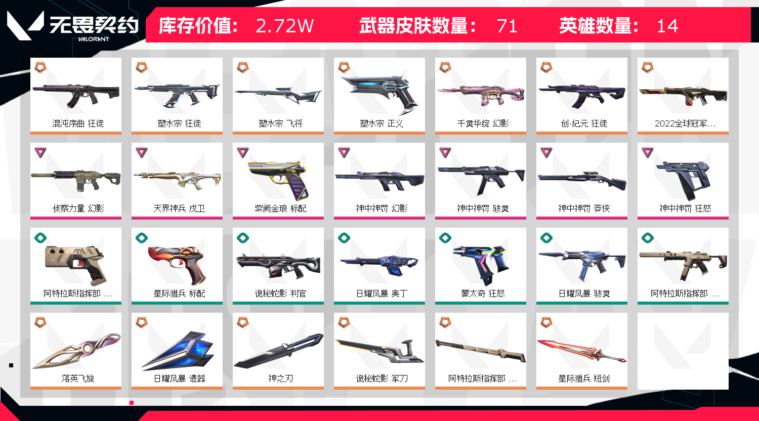 • 皮肤资产价值: 27220
