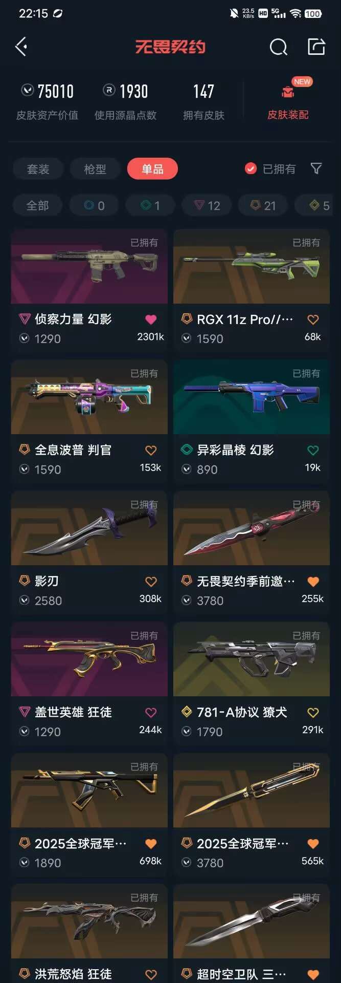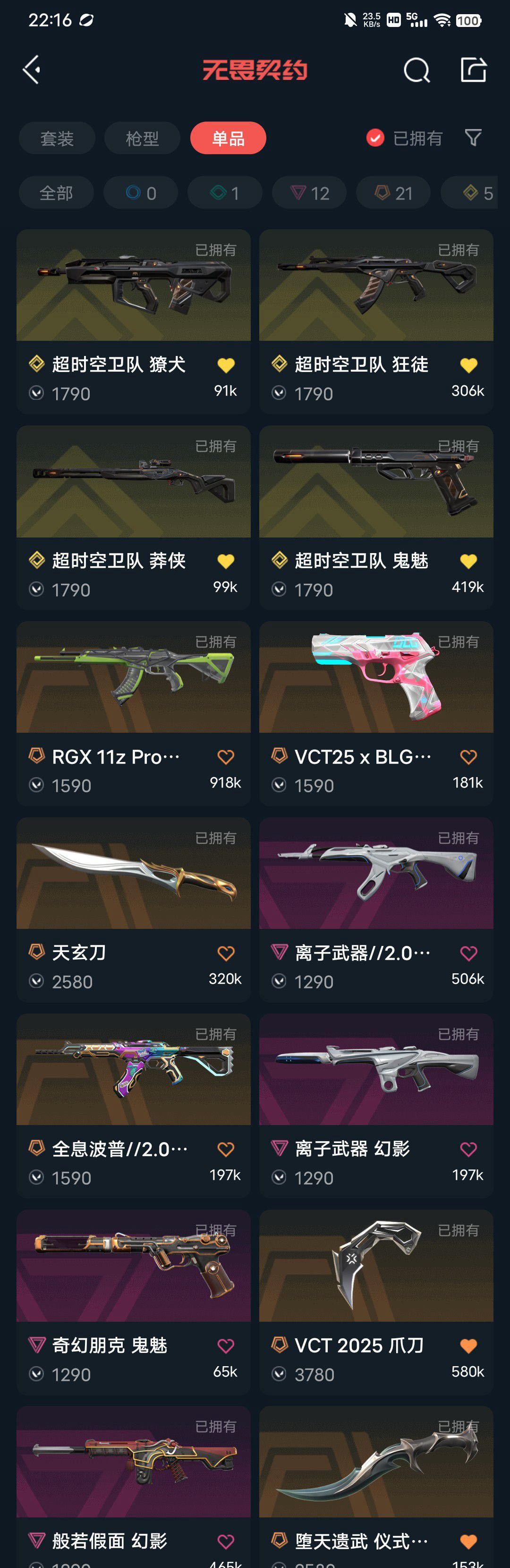 可排位 冻结重上✨❤️23冠军套25冠军套超时空套堕天套悲悯之刃VCT爪极品狂徒幻影