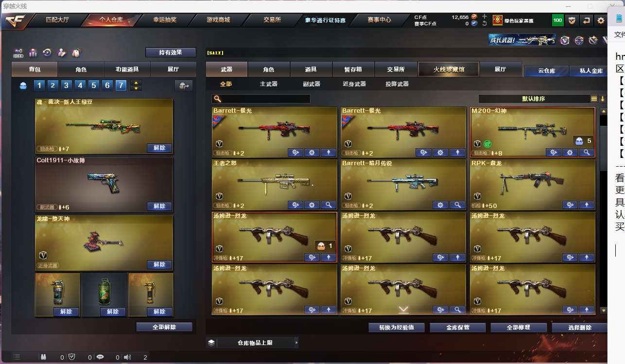 【m200幻神+usp雷暴】【6烈龙 盘龙 】【qbz金色蔷薇】【hk417朱雀】【火麒麟+卡】【黑龙】【雷神+卡+荣耀之魄】【黑骑士+卡+白马银呛】【毁灭+卡】【极光】 【武器:武圣 超新星 海王 王者之魄 】 【5手呛:修罗*3 雷暴 堕天神 】 【10刀具:屠龙 擎天 麒麟刺*4 尼泊尔雷霆 斩神刀雷暴 】 【6雷套:雷霆雷*3 雷暴雷 堕天神雷*2】 【音效卡: 雷神音效卡 火麒麟音效卡 黑骑士音效卡 毁灭音效卡 】;USP-雷暴,RPK-盘龙,QBZ03-金色蔷薇,M200-幻神,