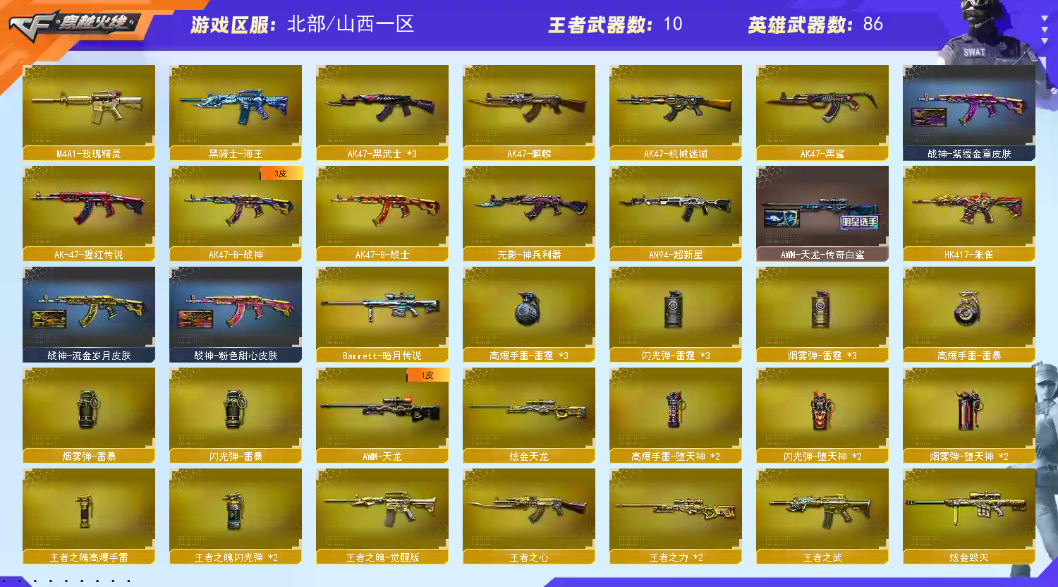 北部❤【m200幻神+usp雷暴】【6烈龙 盘龙 】【qbz金色蔷薇】【hk417朱雀】【火麒麟+卡