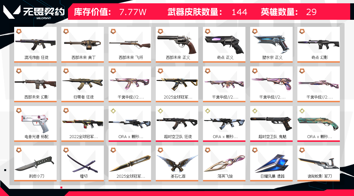 • 皮肤资产价值: 77720