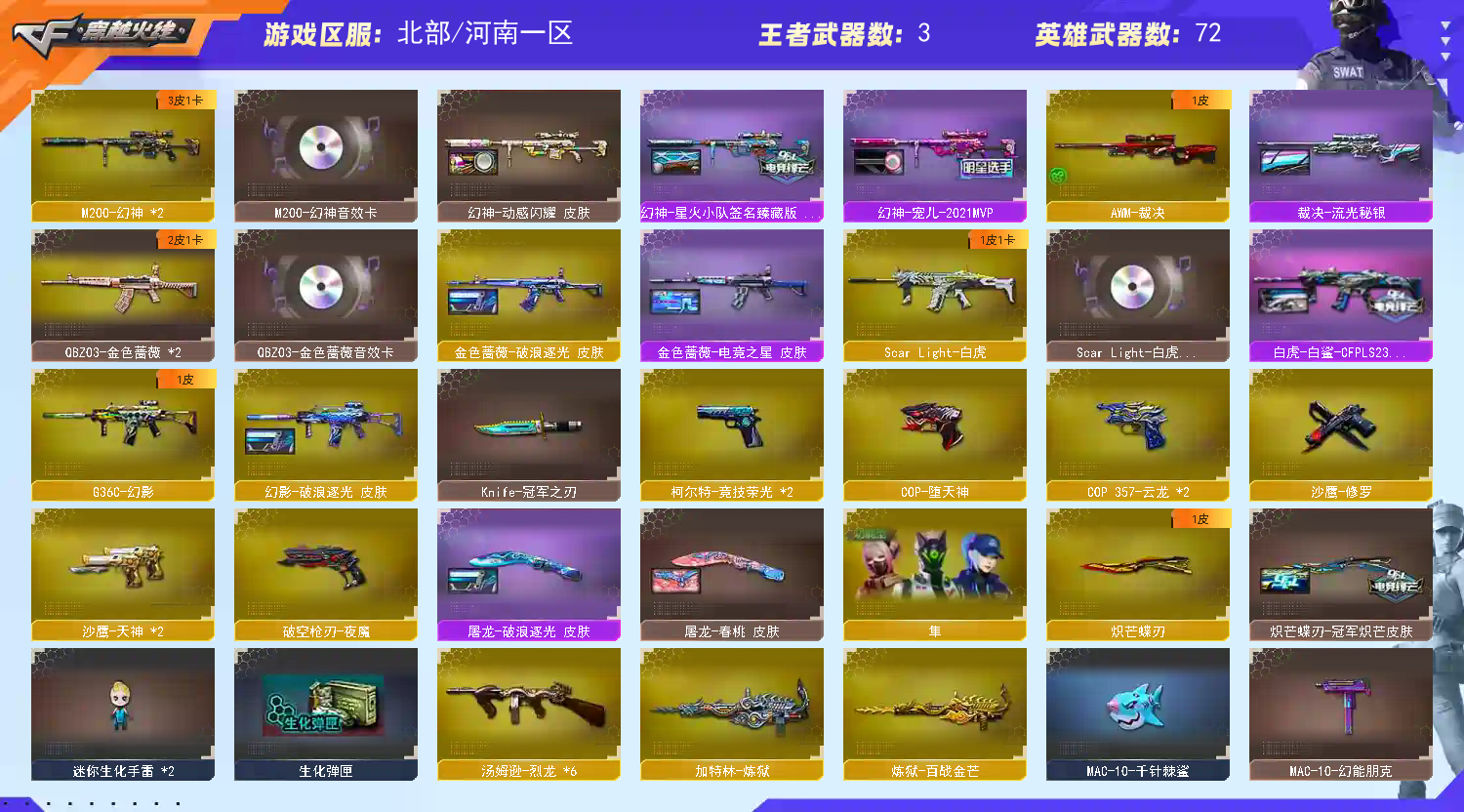 首页 > 租号大厅 > 穿越火线 > 网通区/河南一区 > 双幻神星火宠儿三件套白虎白鲨G363幻影QBZ三件套COP云龙堕天神6烈MAC鲨鱼蝴蝶刀冠军皮冠刃